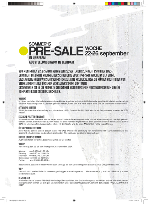 PRE-SALE WOCHE SUMMER 2015 vom 22-09-2014 bis 26-09-2014