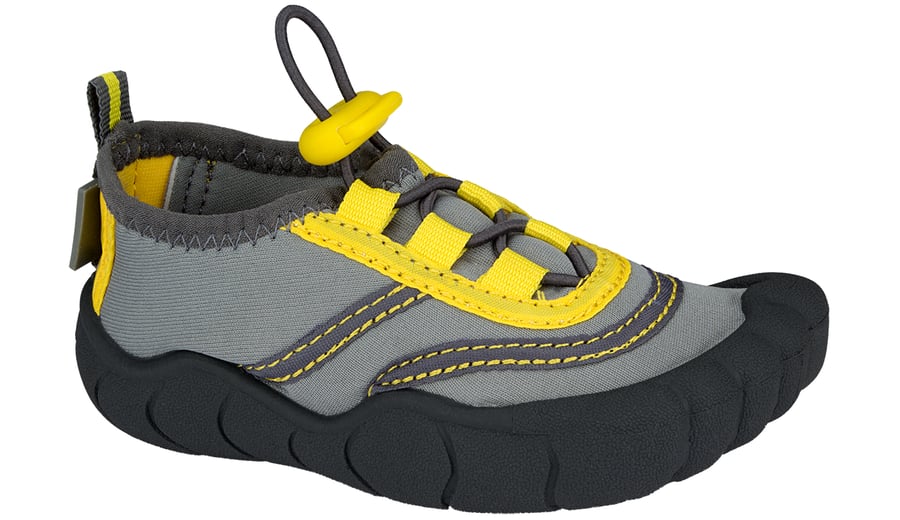 | Produktinformationen | • kräftige TPR Außensohle mit Gleitschutz • Oberseite aus Neopren • Stopperverschluß auf der Vorderseite vom Spann • Anziehhilfe hinter der Ferse |