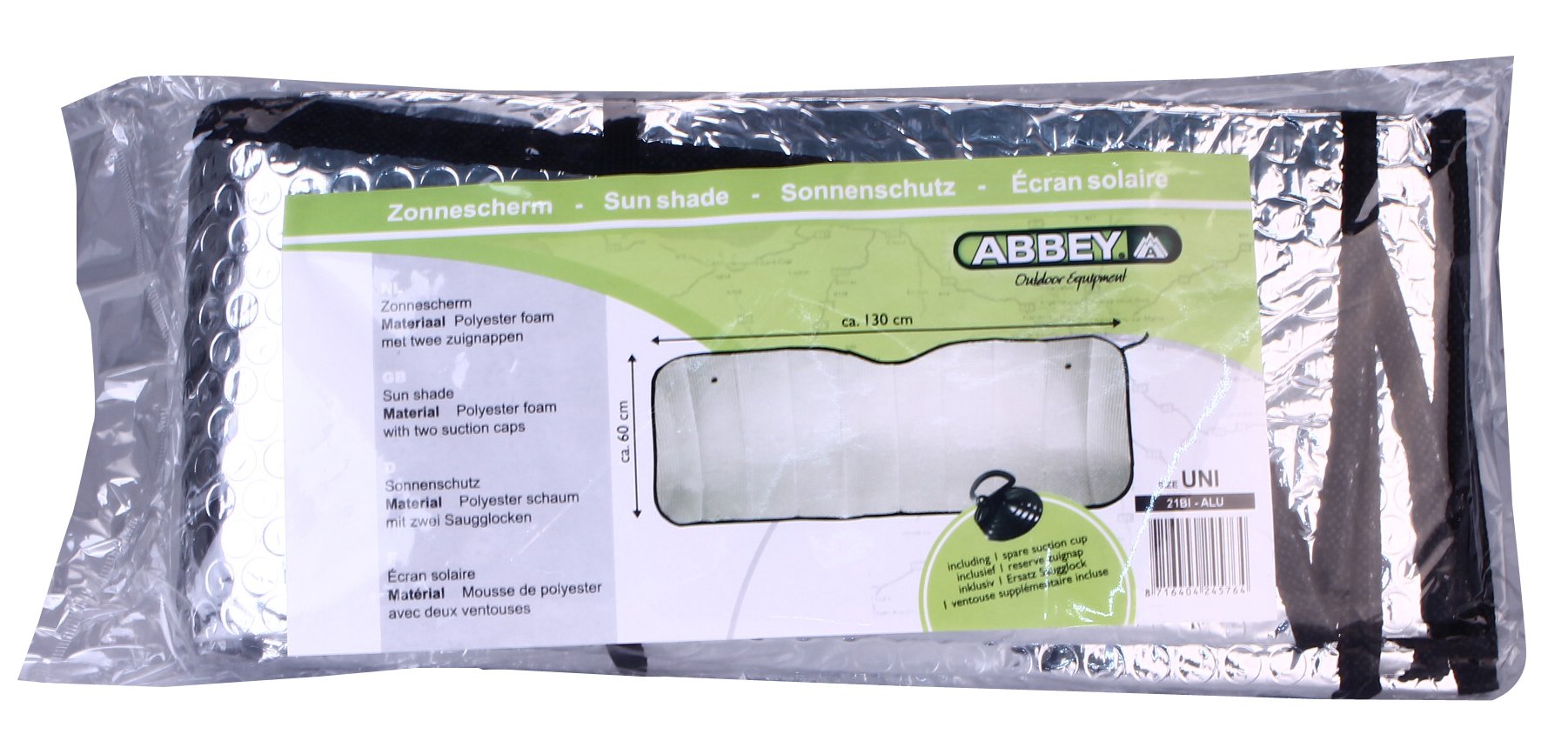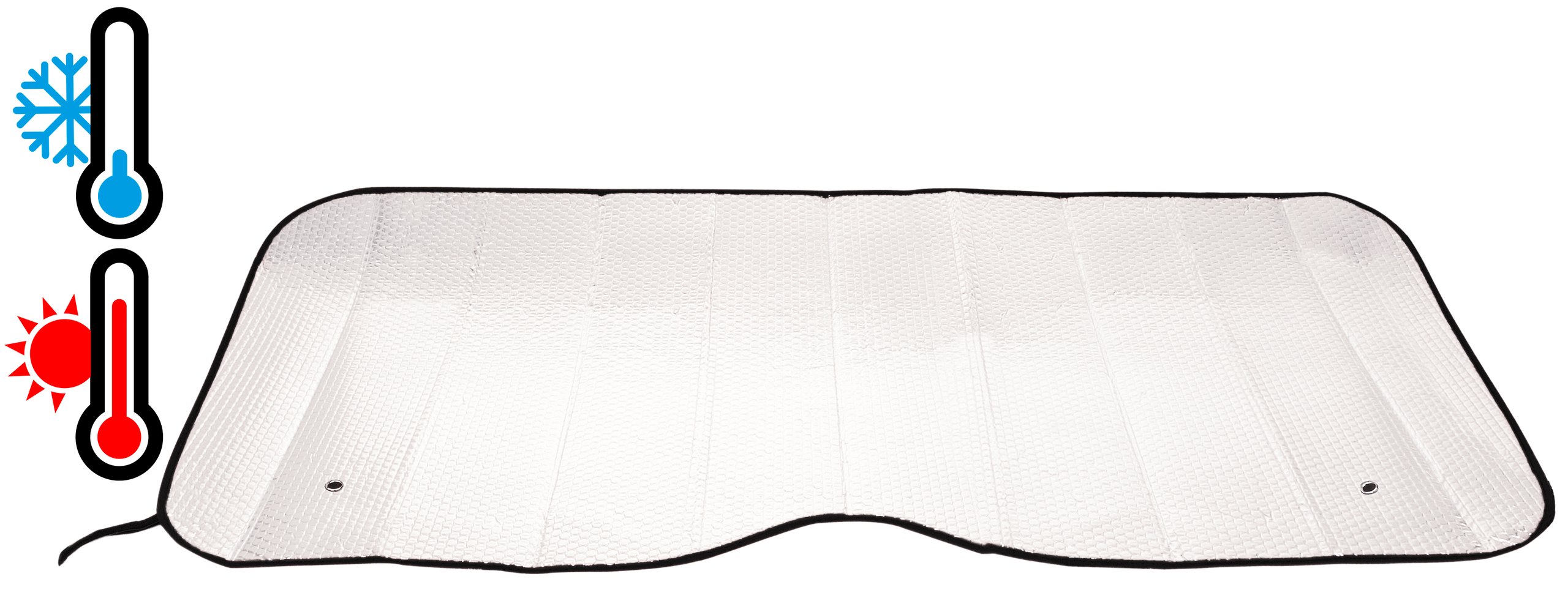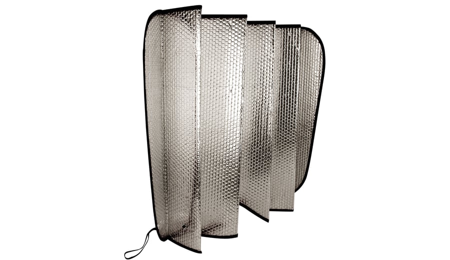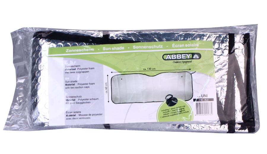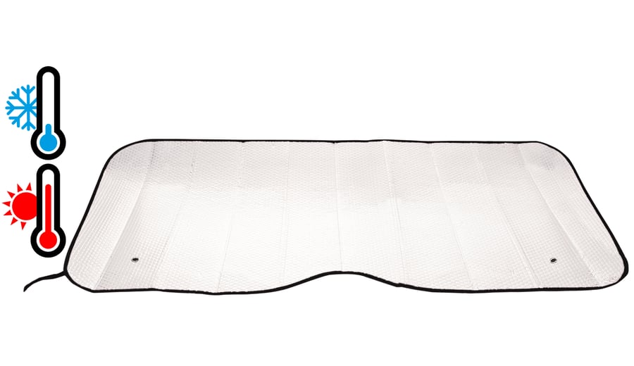 | Produktinformationen | • Polyester Schaumstoff mit Silberfolie Oberseite • Vliesstoff Band rundum • 2 Saugnäpfe zur Befestigung am Fenster • Dicke ca. 1.3 mm • Abmessung ca. 130 x 60 cm |