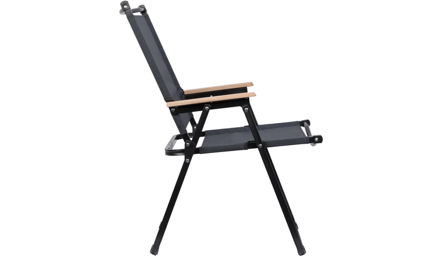 | Produktinformationen | • steel frame with matt black powder coating • stabilizers for extra stability • 300D Oxford polyester fabric with PU coating and PP piping • beechwood armrests • dimensions approx. 62 x 54 x 85 cm • seat height approx. 38 cm • weight only approx. 2.8 kg • maximum load 110 kg |