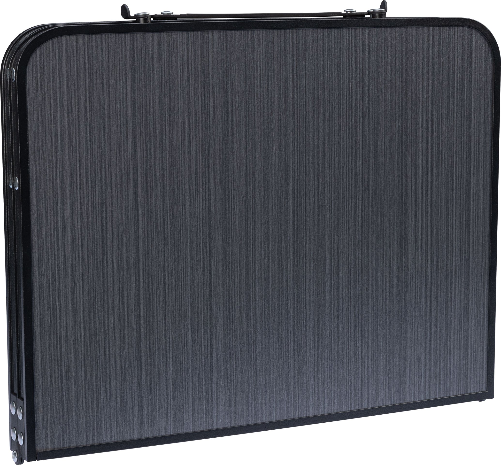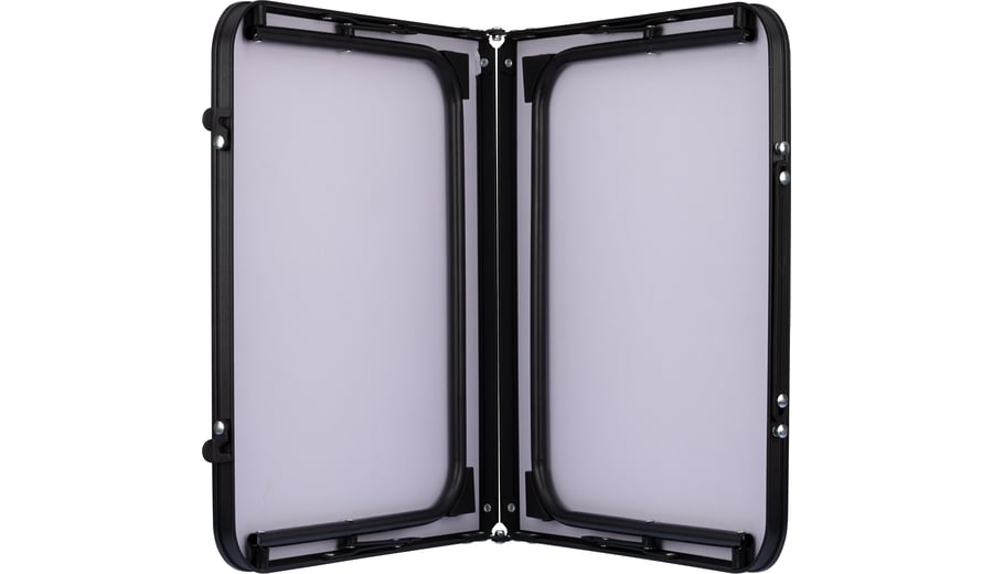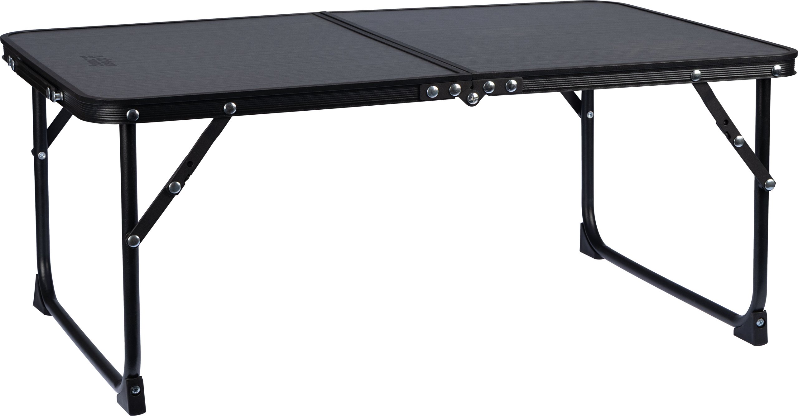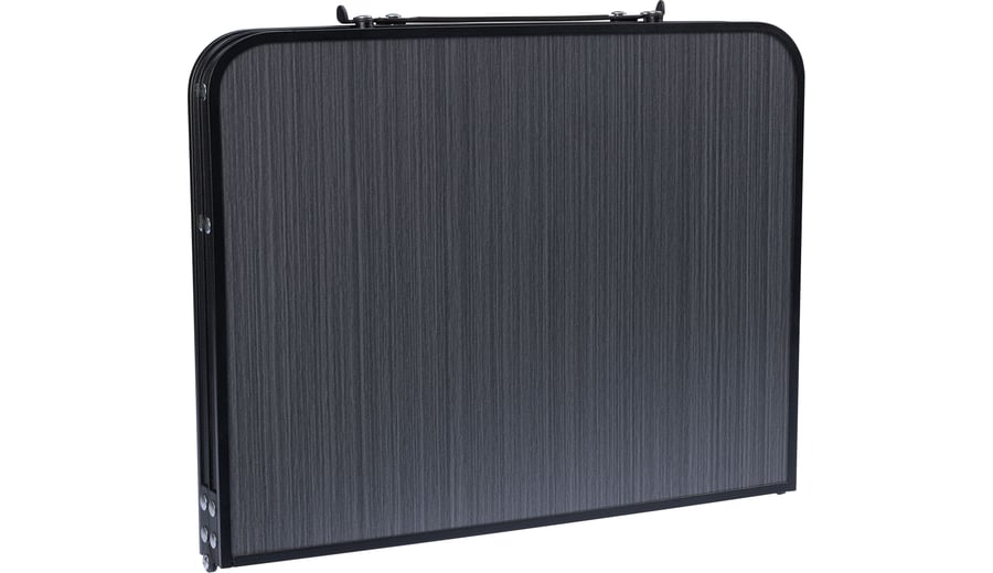 | Produktinformationen | • praktischer, klappbarer Tisch • Aluminiumbeine mit schwarzer Pulverbeschichtung • Tischplatte: Aluminiumrahmen mit schwarzer Pulverbeschichtung, MDF-Platte mit grauer Holzoptik • Tischgröße: ca. 64 × 42 × 28 cm • zusammengeklappt: ca. 42 × 32 × 4 cm • Scharniere: Stahl mit Lock-Mechanismus • Gewicht: 1,5 kg • maximale Belastung: 50 kg |