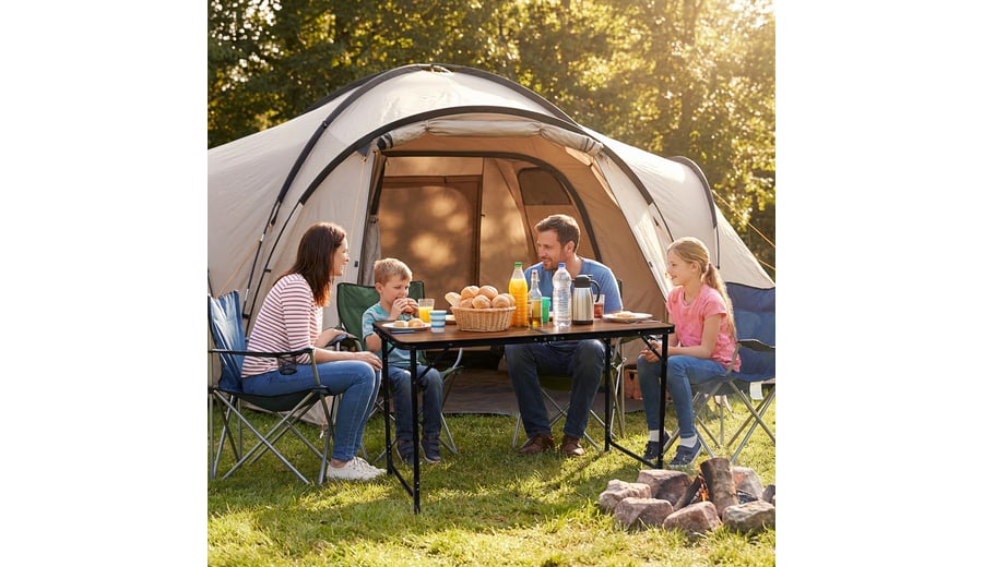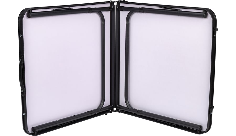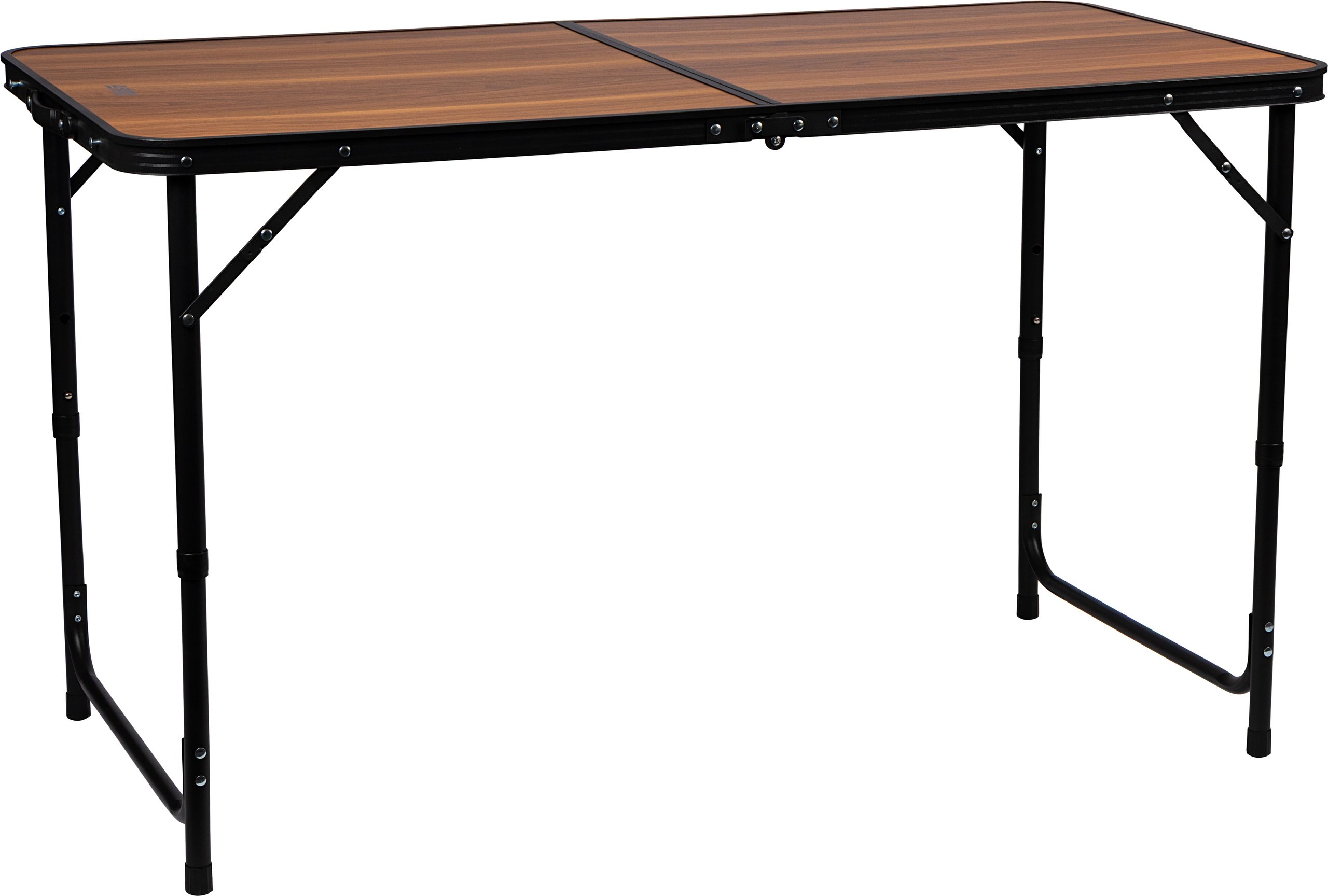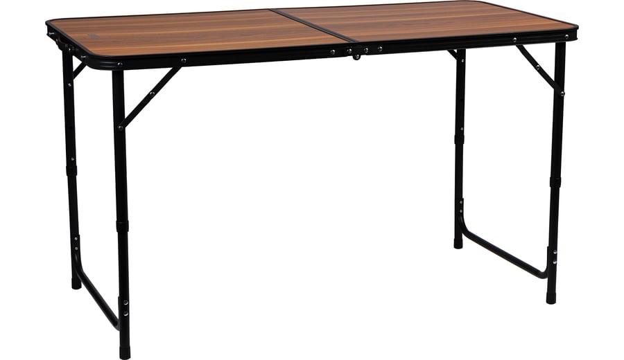 | Produktinformationen | • praktischer, klappbarer Tisch • höhenverstellbar: ca. 54–69 cm • Stahlbeine in U-Form • Tischplatte: Aluminiumrahmen, MDF-Platte mit Holzoptik • Tischplattengröße: ca. 120 × 60 cm • zusammengeklappt: ca. 60 × 60 × 7 cm • Scharniere: Stahl mit Lock-Mechanismus • Gewicht: 4,8 kg • maximale Belastung: 50 kg |