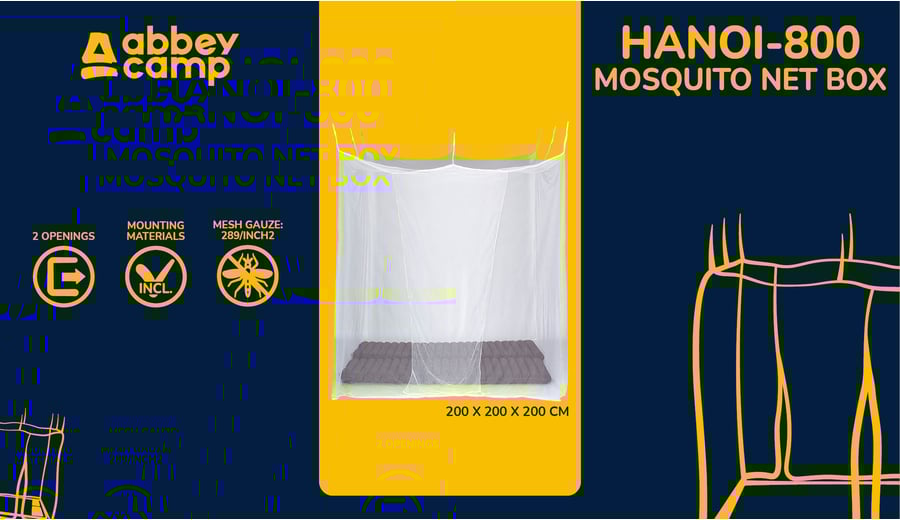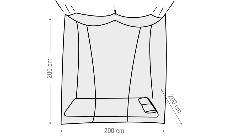 | Produktinformationen | • 100% Polyester Mesh • rechteckiges Modell • einfach zu befestigen mittels 8 Aufhängeschleifen • zwei verdeckte Öffnungen von 100 cm • geeignet für Doppelbetten bis 210 x 200 cm • Abmessung 200 x 200 cm • Gewicht ca. 520 Gramm • Polyester Tragetasche |