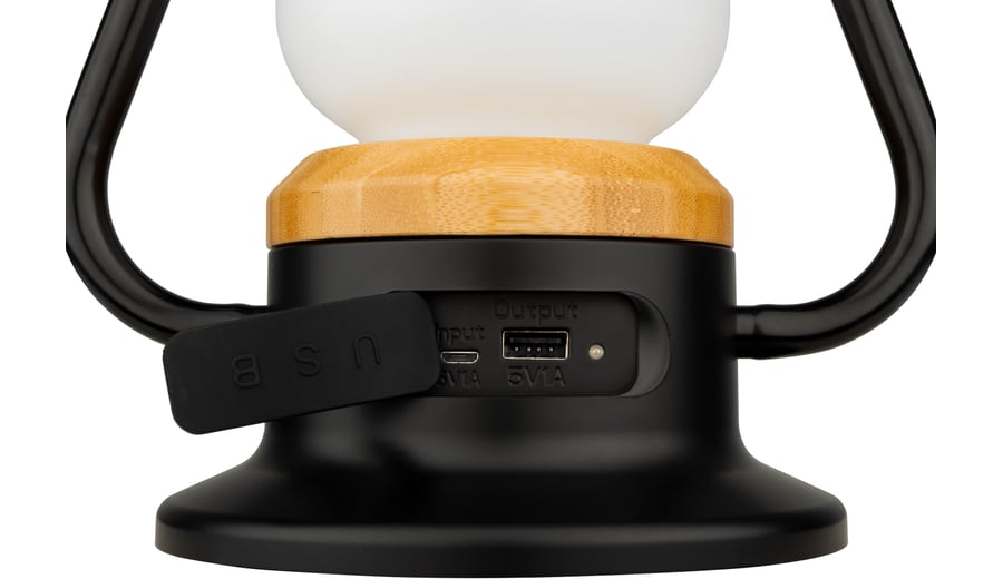 | Produktinformationen | • 2-in-1 light: camping light and powerbank • control rotary knob in the front • LED light with different modes: warm light mode, candle light mode, breathing mode • dimmable light 5-180 lumen, 2200k light temperature • metal details and handle on top • USB port for charging devices • built-in Li-ion battery 3600maH • USB-C rechargeable, cable included • discharging time 4.8-70 hours, charging time <5 hours • measurements 279 x 150 x 198 mm |