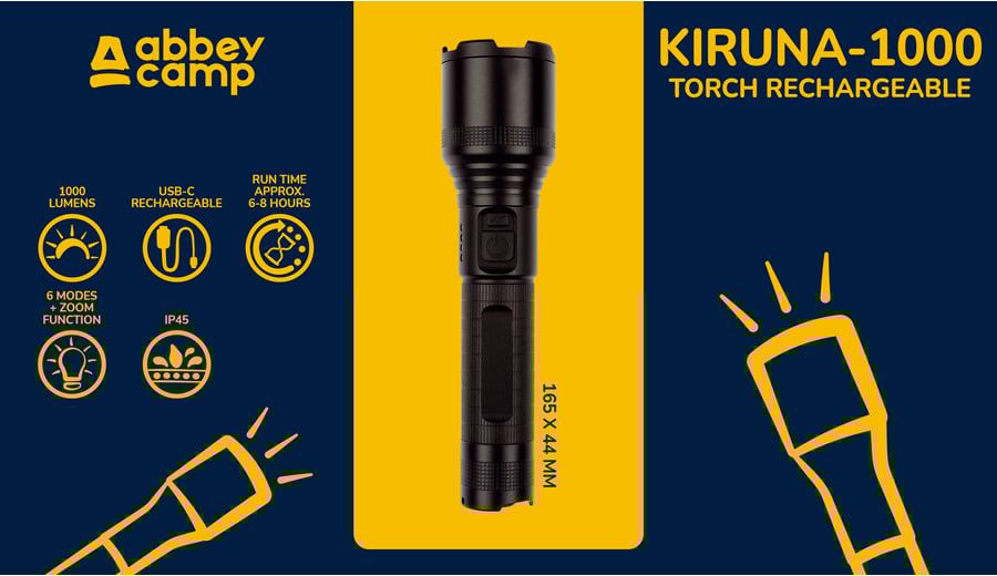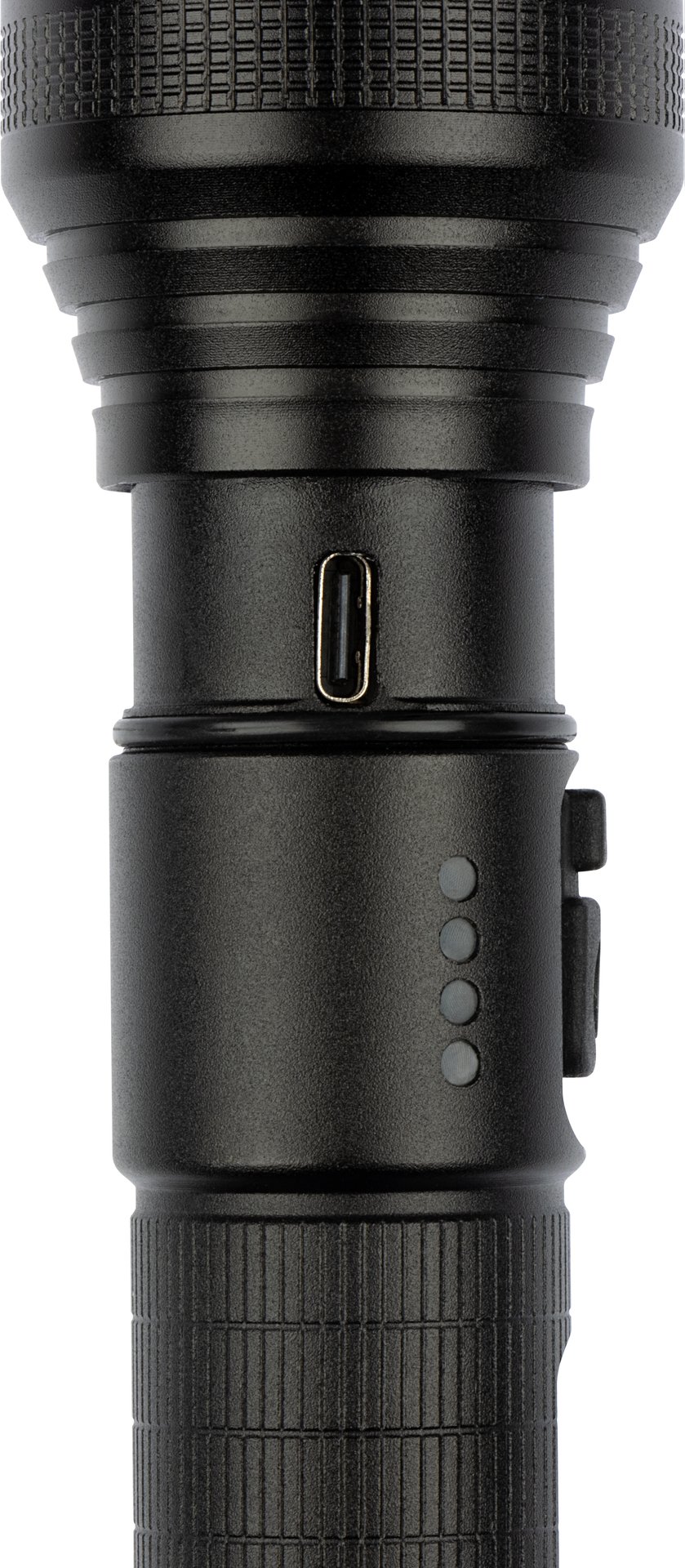 | Produktinformationen | • rechargeable flashlight via USB-C • 6 modes: high, medium, low, strobe, SOS, off • zoom function • charging time: approx. 4 hours • run time: approx. 6-8 hours (depending on mode) • LED: P60 • 1000 LUMEN • IP45 waterproof rating • includes rechargeable battery 3.7V/1800mAh (1x18650)(CE & ROHS compliant) • dimensions: 16.5 x 4.4 cm • weight: 210 grams |