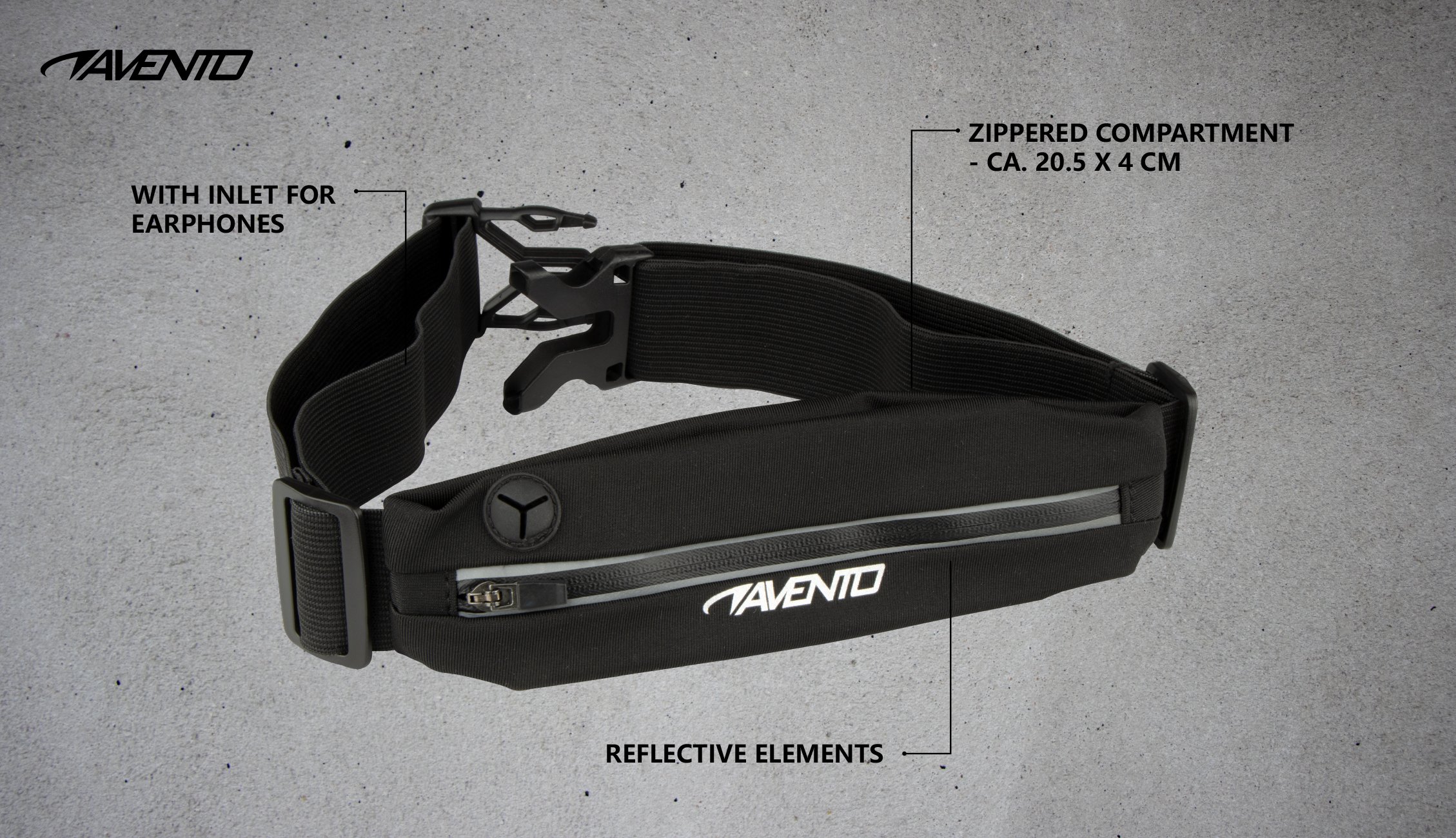 | Produktinformationen | • verstellbarer elastischer Hüftgürtel • leichtgewicht Schnellverschluss • Lycra Tasche mit Reißverschluss, Abmessung ca. 20.5 x 4 cm • reflektierende Akzente |