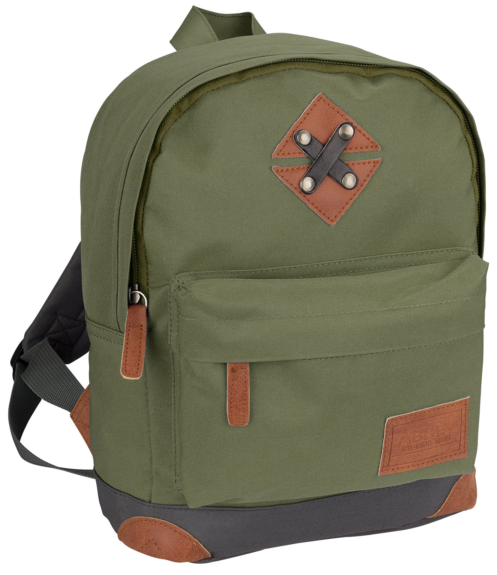 | Produktinformationen | • Rucksack mit Hauptfach und Vorfach mit Reißverschluss und Umschlag • Wasserabweisend • Innenfach mit Reißverschluss • Futter mit Aufdruck • verstellbare anatomisch geformte, gepolsterte Schultergurte • PU lederne Akzente • Handgriff an der Oberseite • Abmessung ca. 28 x 20 x 10 cm |