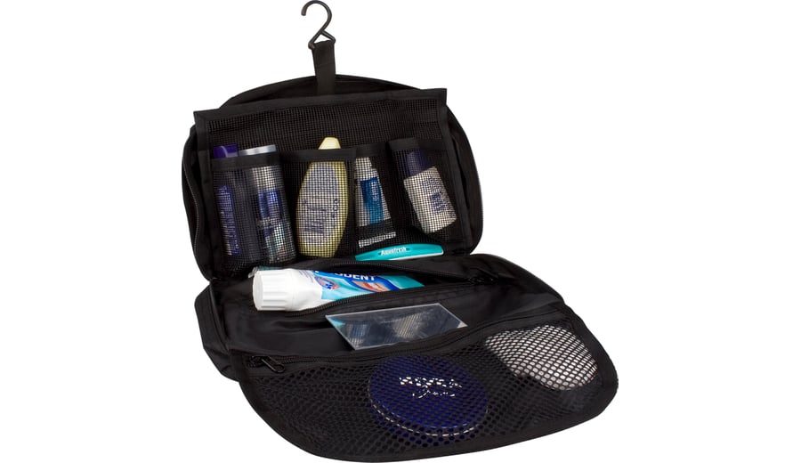 | Produktinformationen | • 2 Ablagefächer mit Reißverschluss • 2 Handgriffe • mittels Haken auf zu hängen • Spiegel • Innenseite mit verschiedenen Mesh-Ablagefächern • herausnehmbares Ablagefach • Abmessung ca. 26 x 16 x 6 cm |