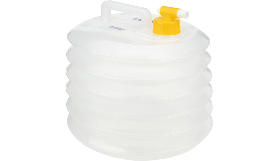 | Produktinformationen | • Schraubverschluss versehen mit praktischem Zapfhahn • Harmonikamodell • falls leer Kompakt mit zu nehmen • extra verstärkter, integrierter Handgriff • Inhalt ca. 15 Liter • geeignet für Trinkwasser; BPA frei |