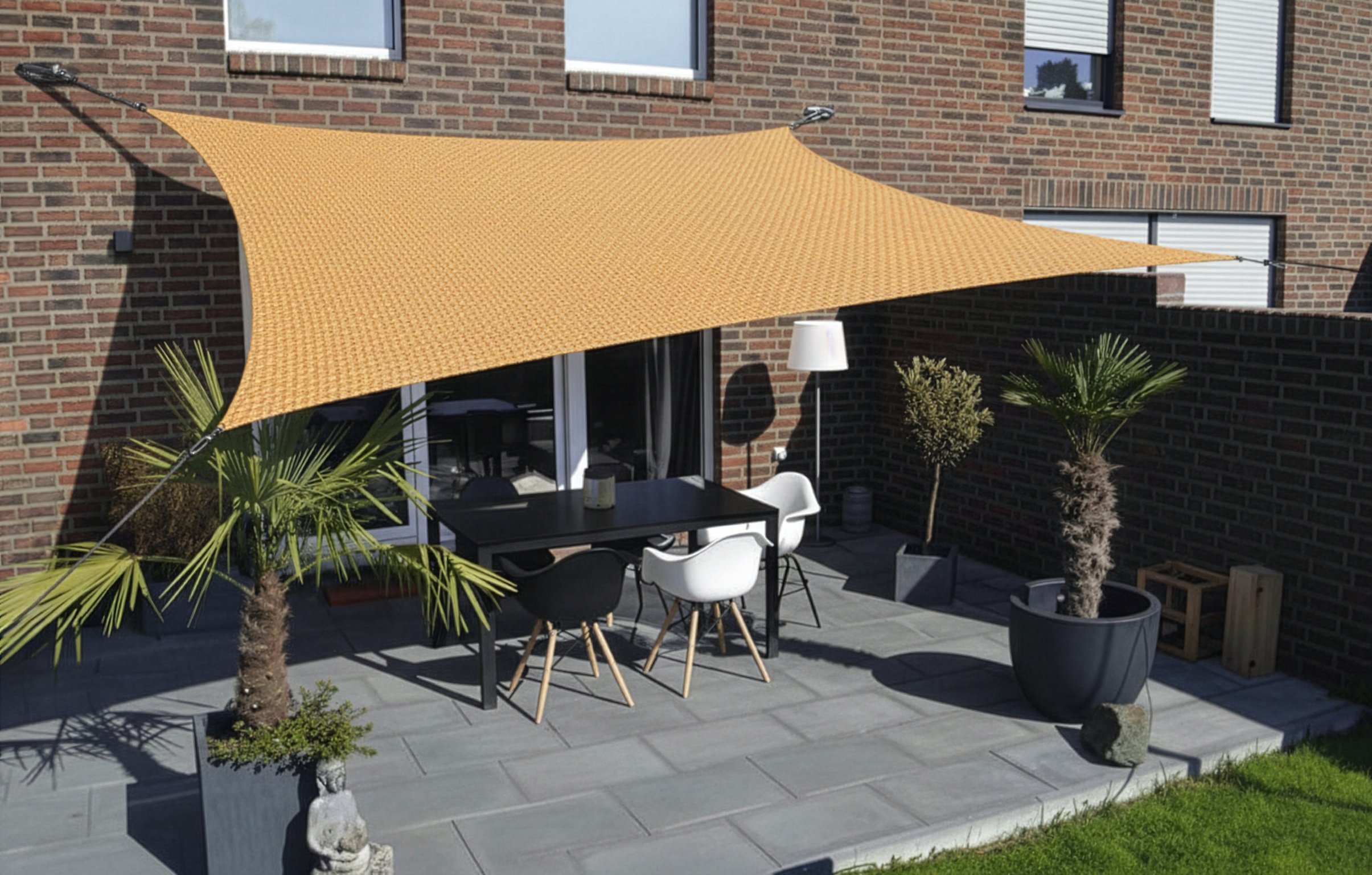 | Produktinformationen | • quadratische Tarp 4 x 4 m • unbehandeltes, hochwertiges HDPE-Material • 90 % Sonnenschutz • starke, rostfreie Edelstahl-D-Ringe an jeder Ecke • extra starke, stark verstärkte Nähte an den Ecken und entlang der Ränder • einfach zu installieren • inklusive 4 × 1,5 m Abspannseil • kein Befestigungsmaterial im Lieferumfang enthalten |