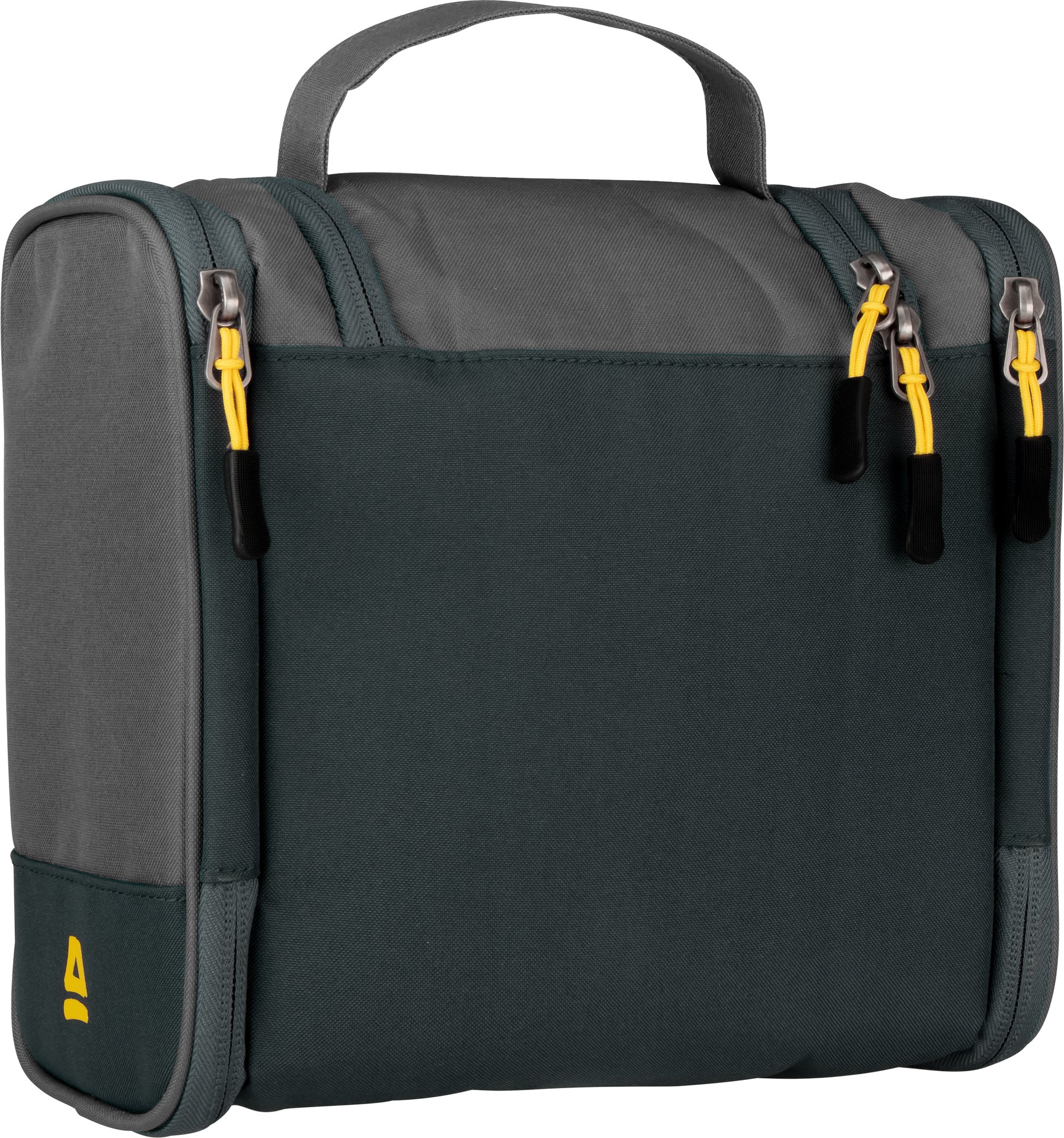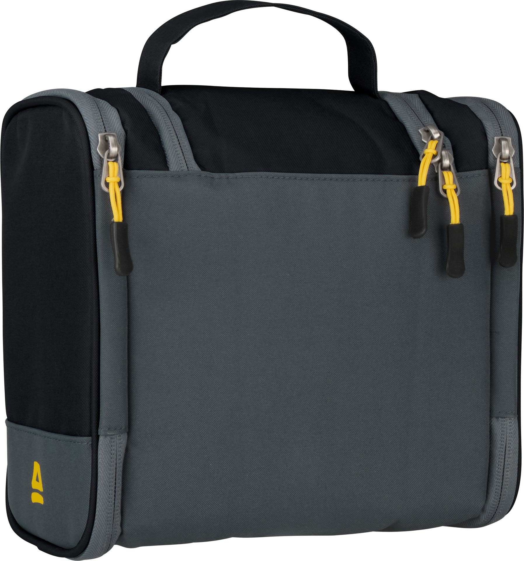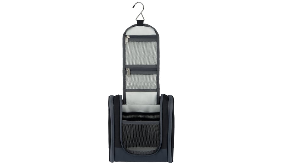 | Produktinformationen | • Hauptfach mit Reißverschluss • wasserabweisend • zwei Seitentaschen • kleines Fach mit einem Reißverschluss in der Klappe • Innenseite in Netztaschen verteilt • mittels Haken auf zu hängen • Handgriff an der Oberseite • Abmessung ca. 20 x 10 x 18 cm |