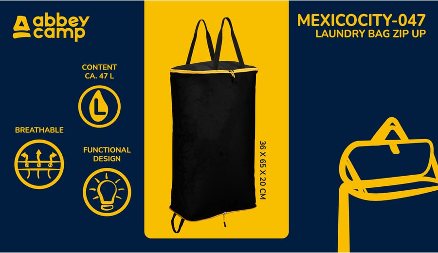 | Produktinformationen | • handy laundry bag which can be folded compactly • breathable mesh construction for good ventilation • can be closed by zipper • handy stay-open function • 2 hanging loops • washable, fast-drying fabric • zipped up size approx. 21 x 18 x 3 cm • full size approx. 36 x 65 x 20 cm |