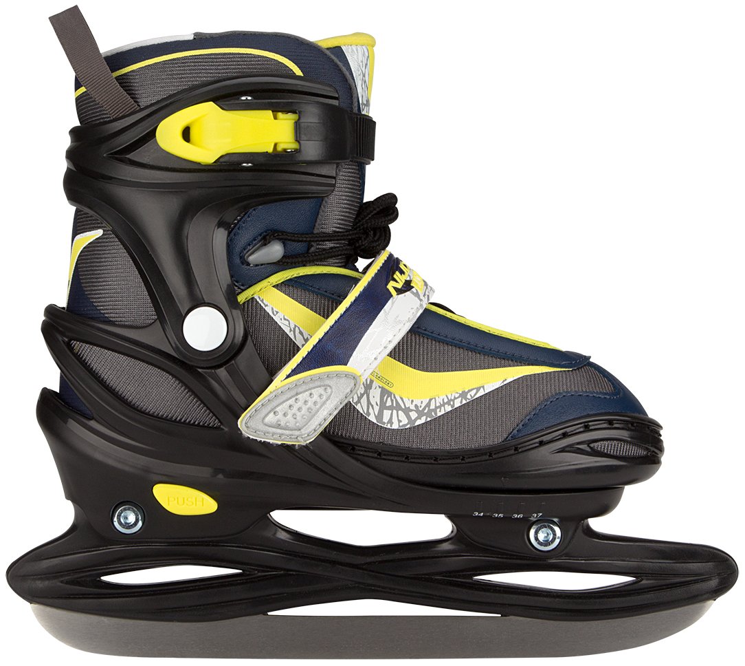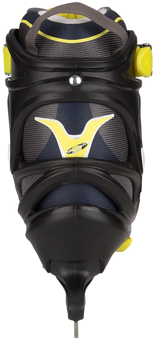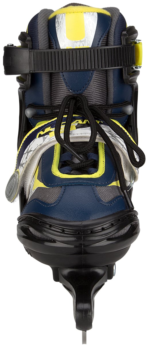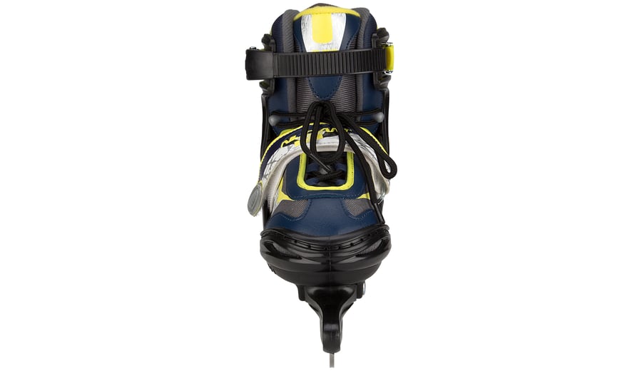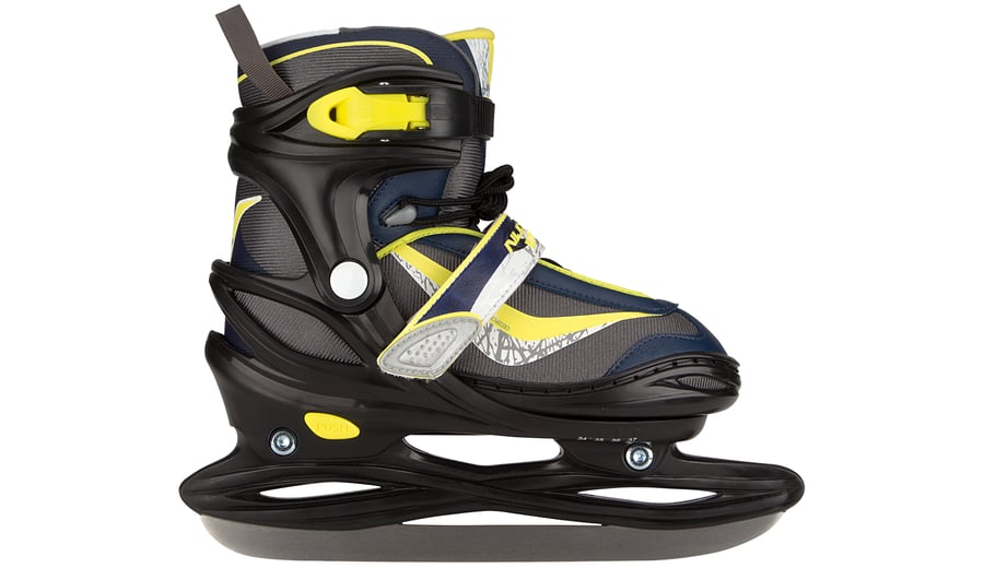 | Produktinformationen | • Polyester Mesh/PU lederner Semi-Softboot • verstellbar in 4 Größen mittels Druckknopfs an der Ferse • zweiseitiger Schnellverschluss mit Schloss • Schnürverschluss • Ristband mit Klettband • TPE Knöchel-, Ferse- und Zehenkappe • synthetischer Kufenhalter mit Eislaufkufen aus rostfreiem Stahl • Schlittschuhkufen sind schon vorgeschärft worden |