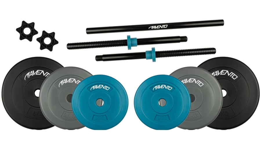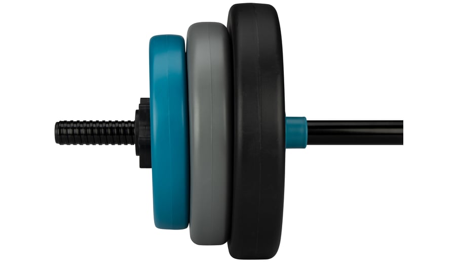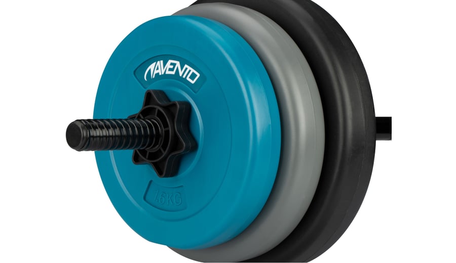 | Inhalt Verpackung | 2 Scheiben von 1.6 Kg, 2 Scheiben von 2.5 Kg, 2 Scheiben von 5.0 Kg, 1 Hantelstange von 1.7 Kg mit einer Länge von 130 cm, 2 Schraubverschlüsse |