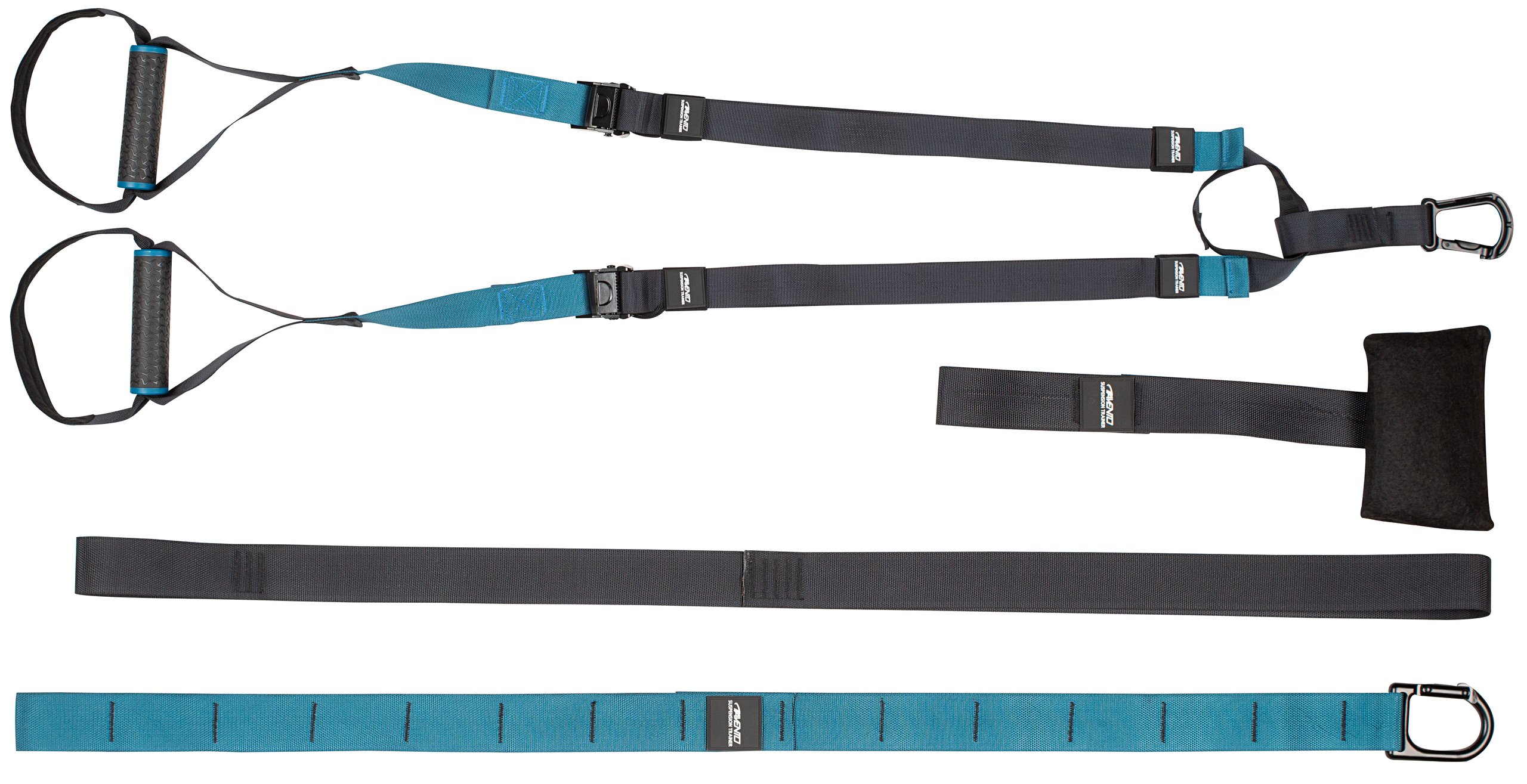 | Produktinformationen | • extrem vielseitiges multifunktionales Trainingsset • breites Übungsspektrum möglich • kompakt und tragbar • starke und dauerhafte Gurte und Halterungen mit rutschfesten Handgriffen • geeignet für einen Benutzer / eine Benutzerin mit einem Körpergewicht bis zu 150 Kg |