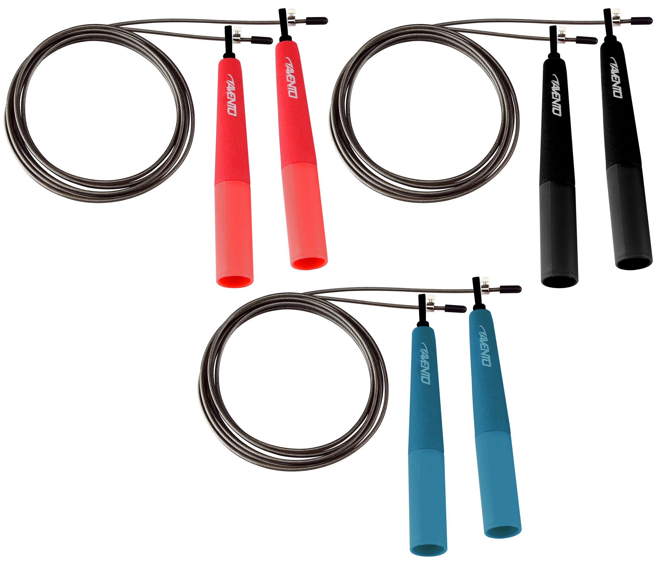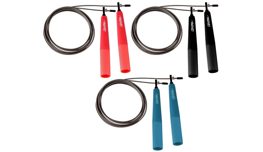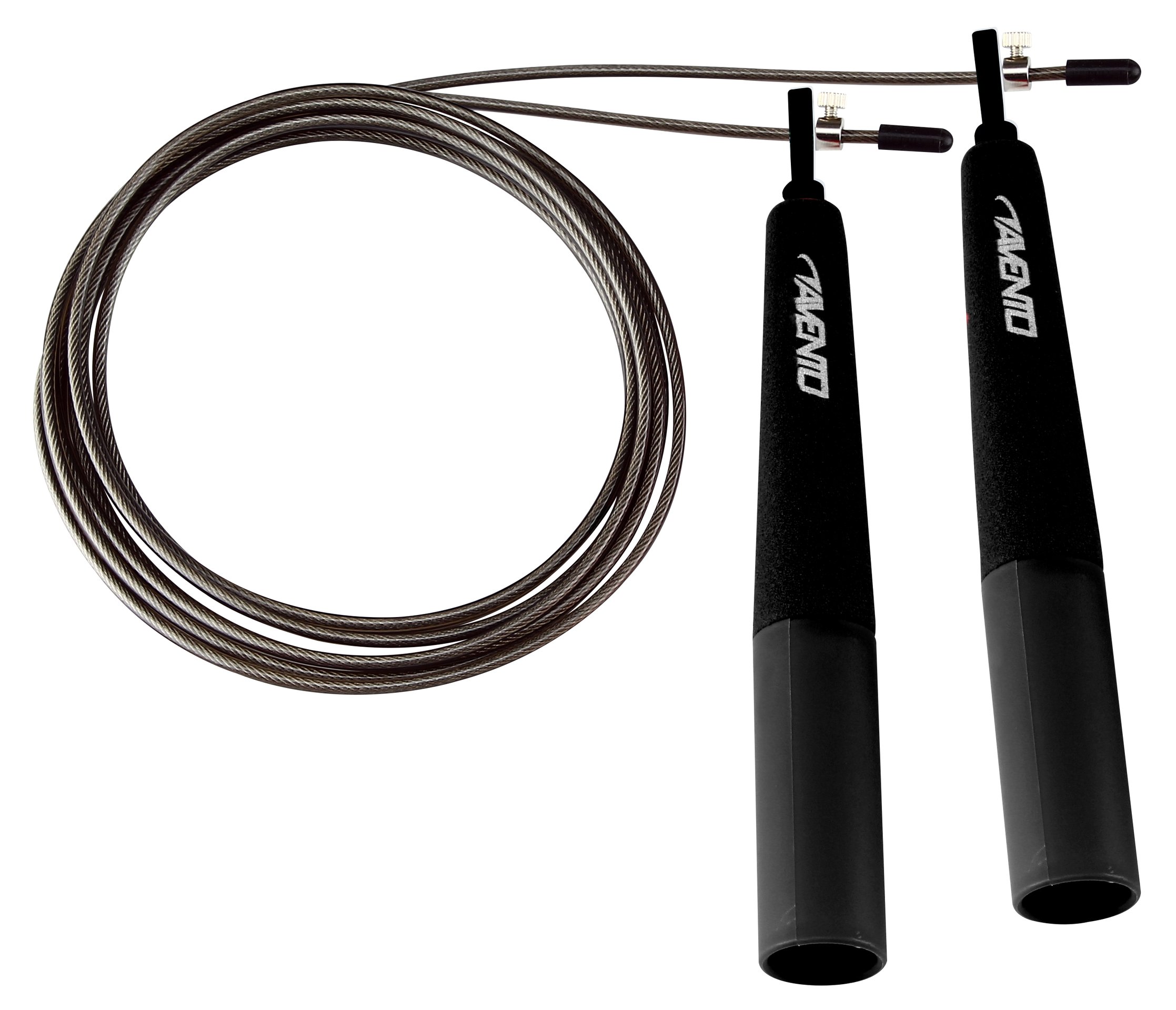 | Produktinformationen | • Schnur aus Stahldraht mit Kunststoff Hülle • kegelförmige Kunststoff Handgriffe mit EVA Schaumstoff • Schnurlänge ca. 290 cm, mittels einer Schraube einfach an zu passen • Dicke Schnur ca. 2.8 mm • Länge Handgriffe ca. 16 cm • Gewicht ca. 90 Gramm |