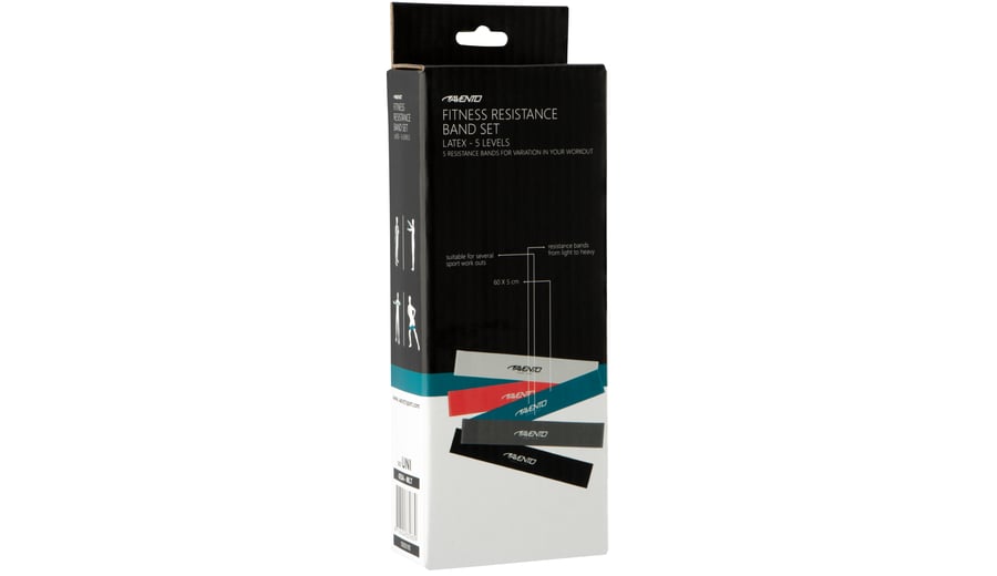 | Produktinformationen | • Abmessung ca. 60 (Umfang) x 5 (Breite) cm • Satz von 5 unterschiedlichen Widerstandsbändern: Level 1: extra leicht -Stärke 0,4 mm, 4,5 kg Zugkraft Level 2: leicht -Stärke 0,6 mm, 6,8 kg Zugkraft Level 3: mittel -Stärke 0,8 mm, 9,0 kg Zugkraft Level 4: schwer -Stärke 1,0 mm, 13,6 kg Zugkraft Level 5: extra schwer -Stärke 1,2 mm, 22,7 kg Zugkraft |