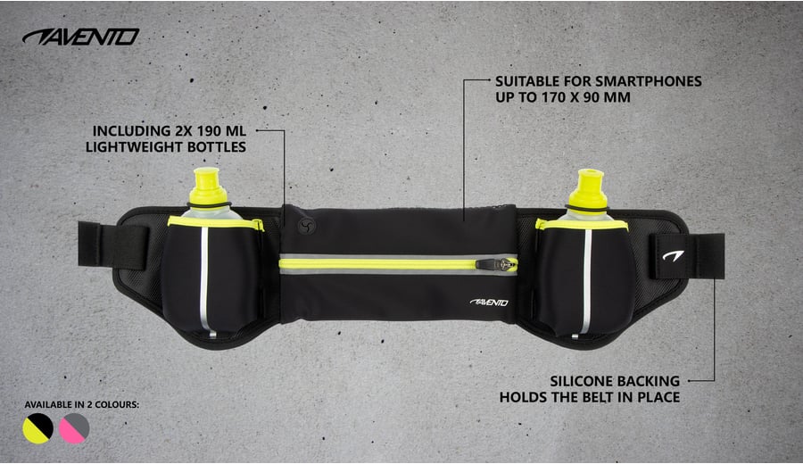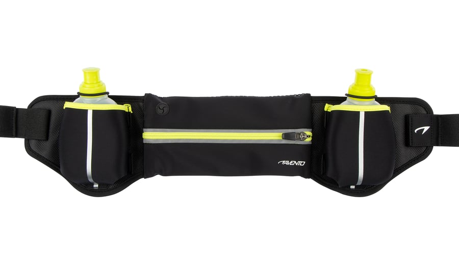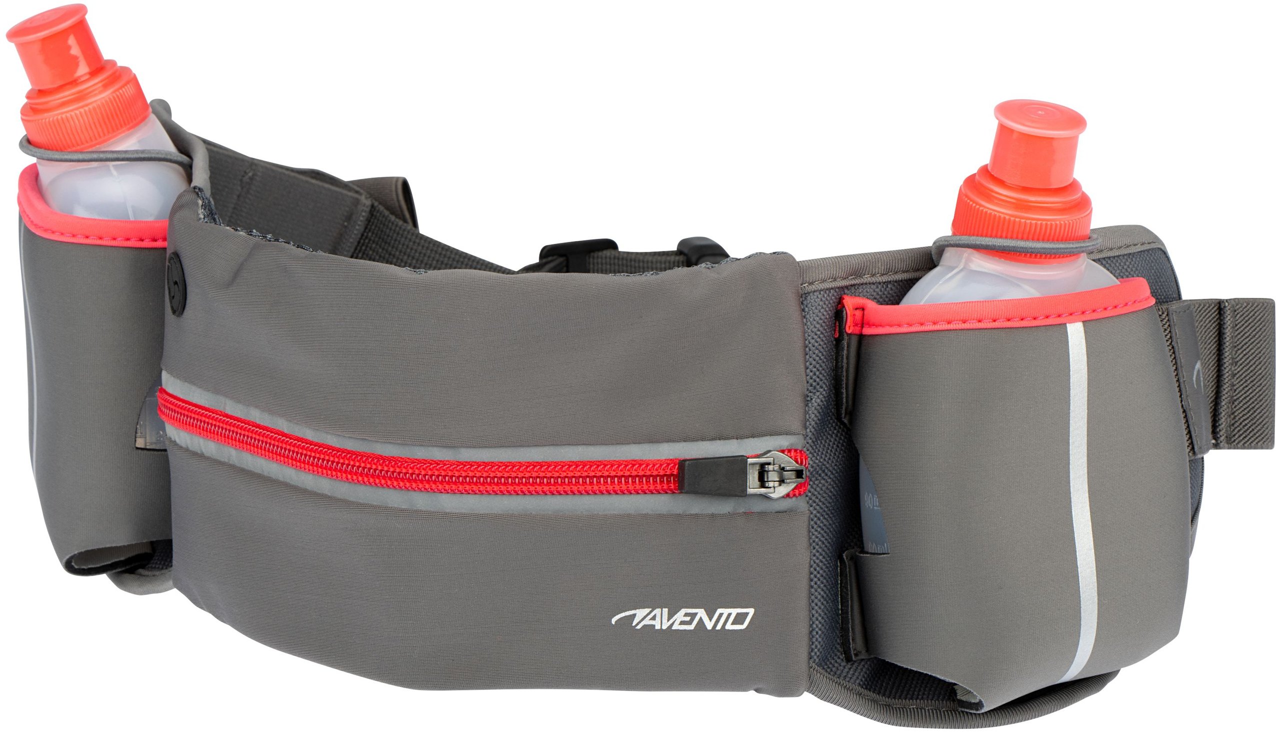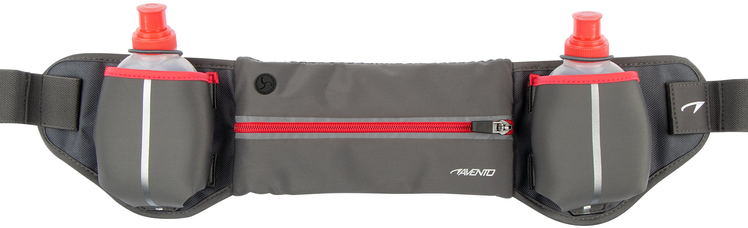 | Produktinformationen | • Hüftteil mit Polsterung und rutschfesten Silikonnoppen • verstellbares elastisches Band mit Schnellverschluss • Flaschenhalter aus Neopren • kleines Fach mit Reißverschluss, geeignet für Smartphones mit einer Abmessung bis 170 x 90 mm • Öffnung für Ohrhörer • 2 leichtgewicht Flaschen mit Trinktülle, Inhalt ca. 190 ml pro Flasche • reflektierende Akzente |