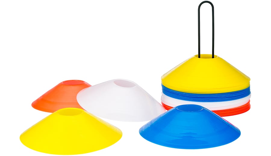 | Inhalt Verpackung | 10x Hütchen Blau 10x Hütchen Gelb 10x Hütchen Orange 10x Hütchen Weiß schwarzer Tragebügel |