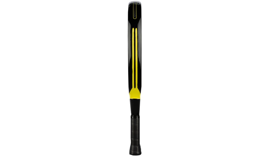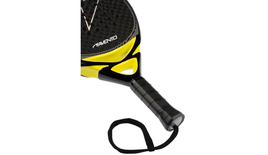 | Produktinformationen | • teardrop shape • 12K braided carbon racket frame with double bridge • eva 15 foam core • racket surface with matte 3D Hexagon finish • balance 260-270 mm (medium balance) • frame pressure 260 kgs • taped grip • with standard wrist strap • length 455 mm, width 260 mm thickness 38mm • weight 360+/- 10g |