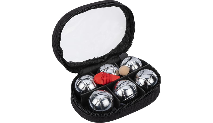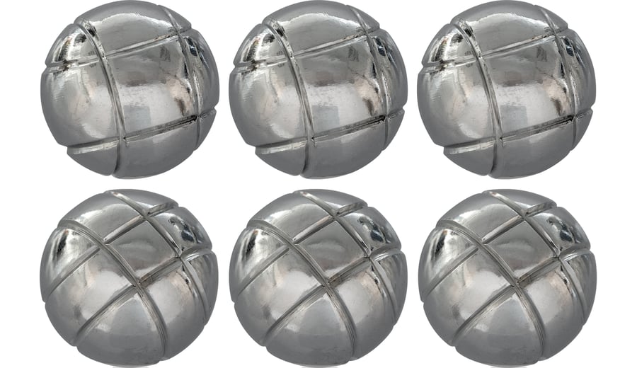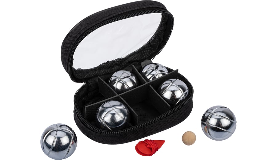 | Produktinformationen | • verchromte Stahlkugeln, Durchmesser 32.8 mm • But aus Naturholz, Durchmesser 12.7 mm • Gewicht Stahlkugel ca. 62 Gramm • 2 verschiedene Riffelungen • Polyester Etui mit Plastikverteiler |