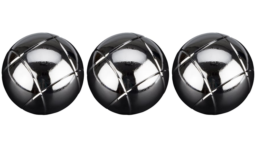 | Produktinformationen | • verchromte Stahlkugeln, Durchmesser 73 mm • But aus Holz, Durchmesser 28 mm • Gewicht Stahlkugel ca. 720 Gramm • verfügbar in 2 verschiedenen Riffelungen • Polyester Etui |