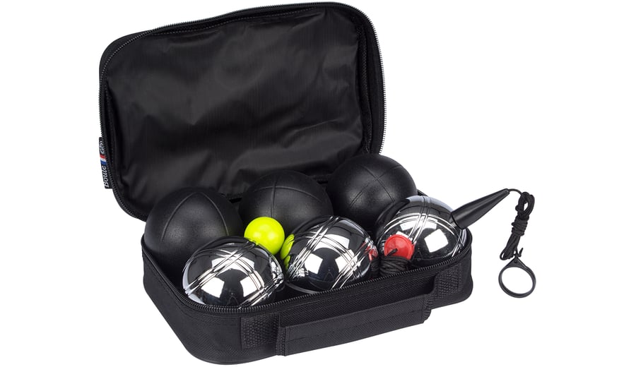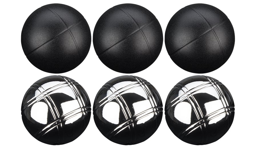 | Produktinformationen | • Stahlkugeln, Durchmesser 73 mm • But aus Holz, Durchmesser 28 mm • Gewicht Stahlkugel ca. 720 Gramm • 3x matt schwarze und 3x verchromt silberne Kugeln • Magnet mit Polyamid Schnur, Länge 95 cm • Polyester Etui |