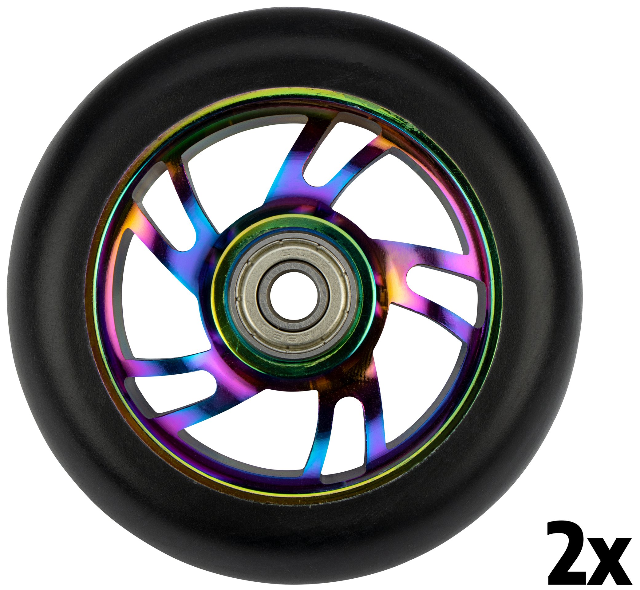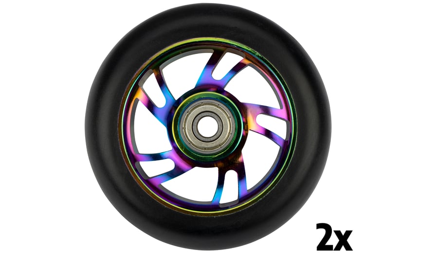 | Produktinformationen | • 85A PU Rollen, mattschwarzes Finish • Aluminium Speichen, neo-chrome Finish • ABEC 7 Chrom Kugellager • Abmessung 100 x 24 mm |
