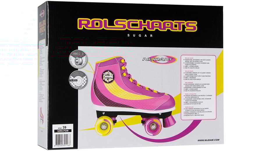 | Produktinformationen | • PVC lederner/perforiert PVC lederner Schuh mit Schnürverschluss • PP Schiene • PU Rollen, Abmessung 54 x 32 mm • ABEC 3 Kugellager • 2x TPU Stopper |
