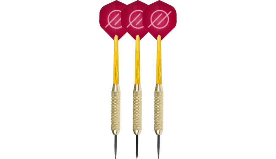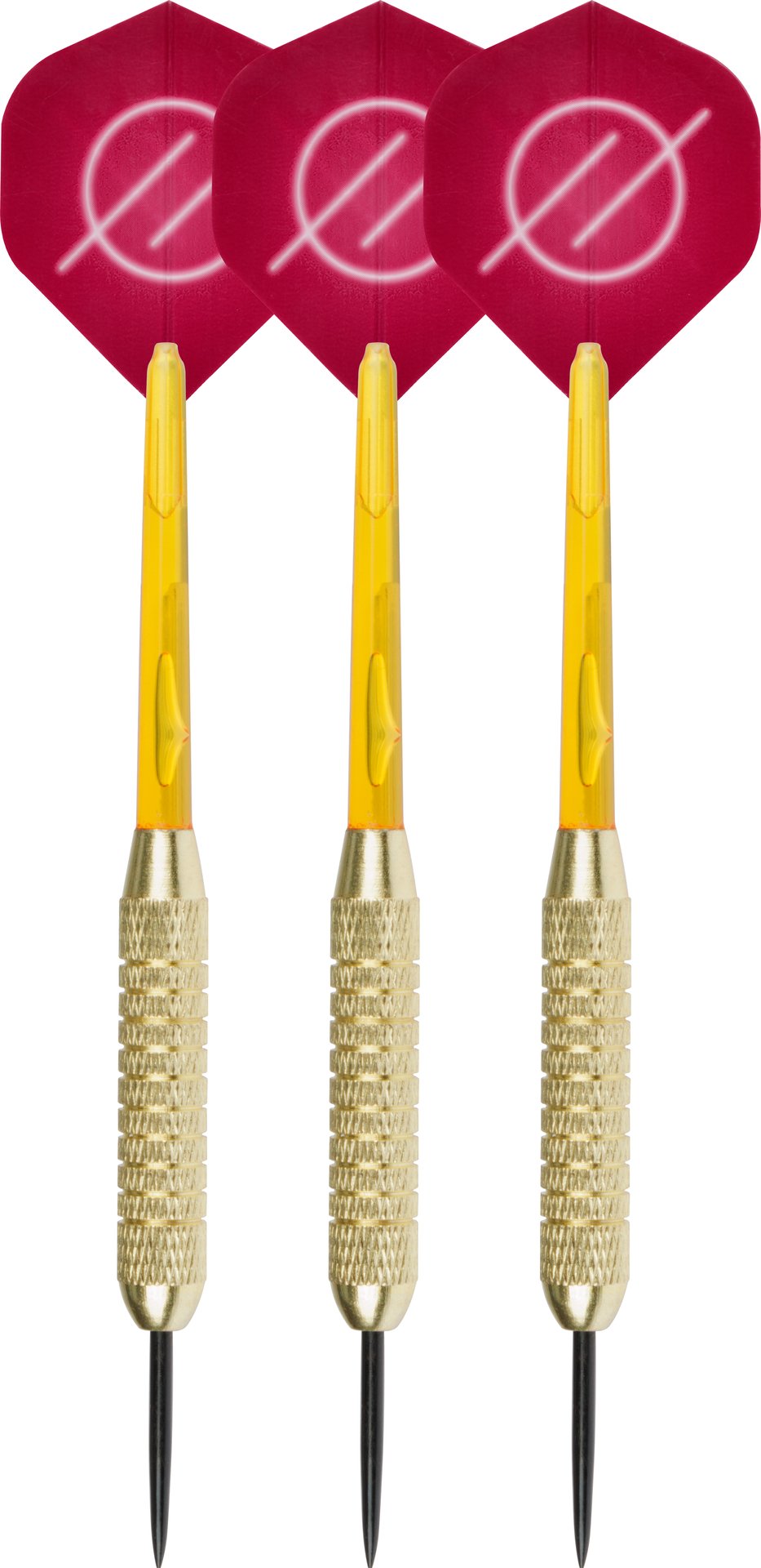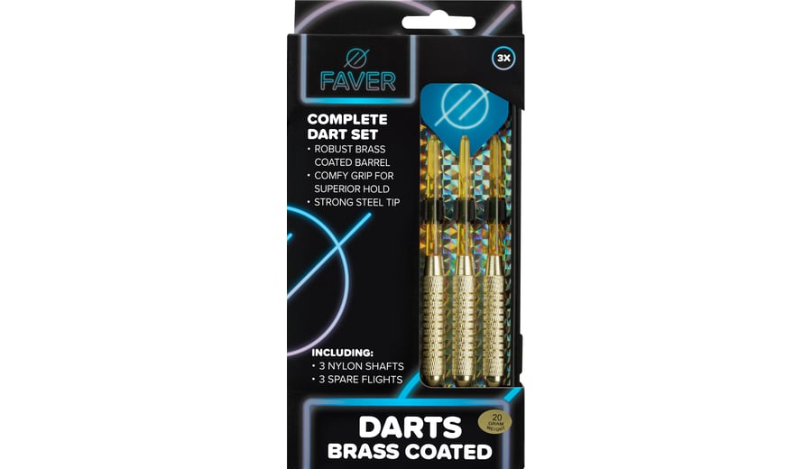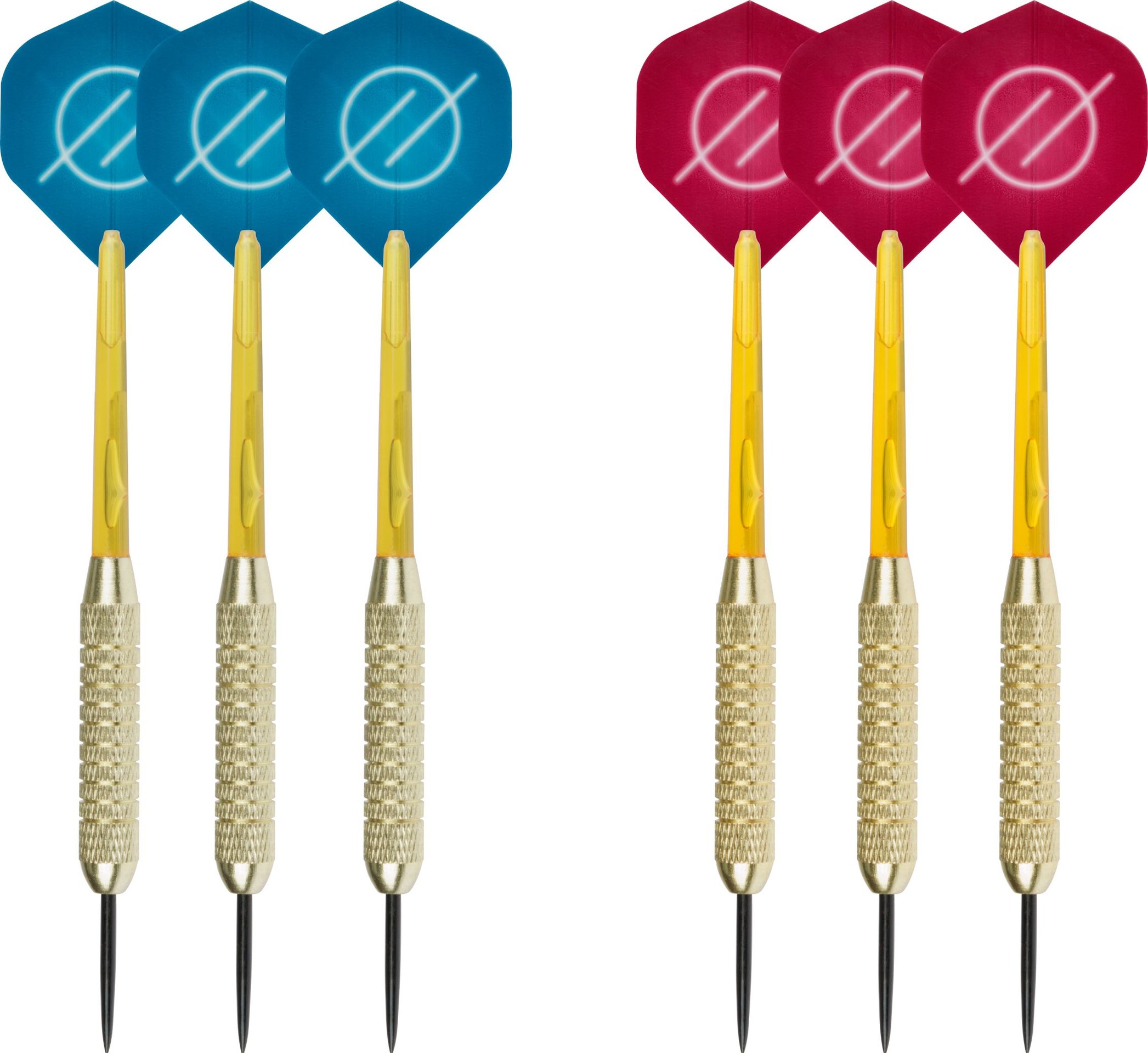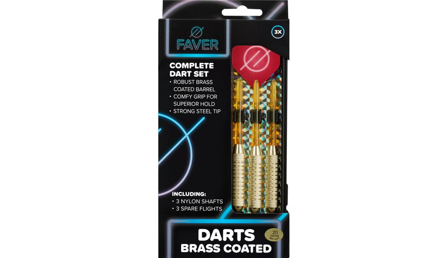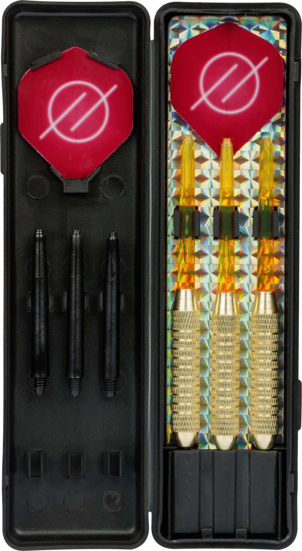 | Produktinformationen | • complete dart set • sturdy brass coated barrel with a comfortable grip • nylon shaft • strong steel point • including 3 spare flights • supplied in a handy dart case |
