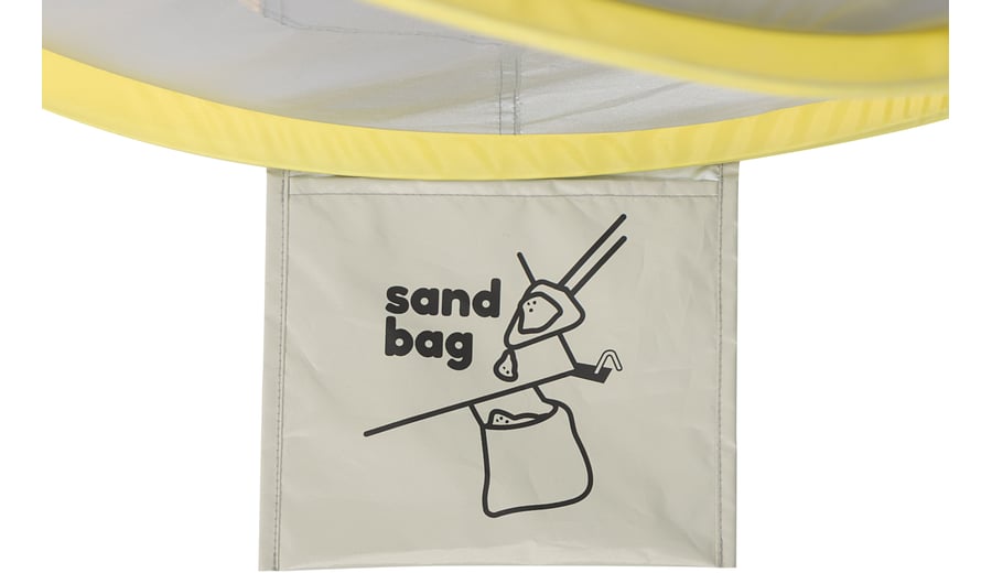 | Produktinformationen | • Pop-up-Strandzelt mit reflektierendem Stoff • 100% Polyesterstoff mit wasserabweisender PU-Beschichtung und UPF50+ Beschichtung • Federstahlrahmen • Bodenplane aus 100% Polyester mit wasserabweisender PU-Beschichtung • Mesh-Fenster mit abnehmbarem Innenstoff • 6 rostfreie Stahlheringe, Länge 18 cm • 3 verstellbare Nylonschüre (Mindestlänge 170 cm) • 1 großes Aufbewahrungsfach (20 x 25 cm) im Inneren • Abmessung ca. 130 x 130 x 100 cm • 2 Sandsäcke an der Rückseite für zusätzliche Stabilität • Geliefert in einer (runden) Polyester-Tragetasche mit Reißverschluss |