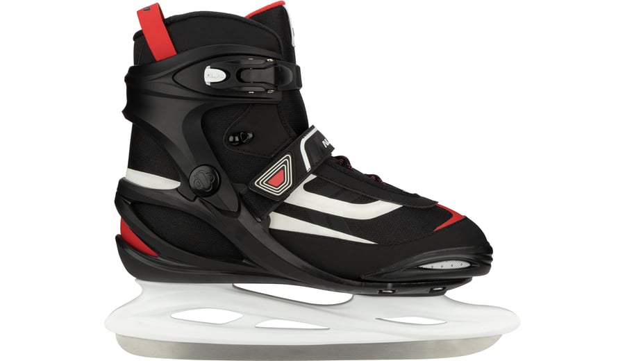 | Produktinformationen | • Design: semi-soft boot of high-density shock absorbing PE and PU leather/polyester mesh • Inner shoe: comfortable polyester with an EVA and pearl foam lining • Fasteners: quick-lock fastener with PU leather powerstrap and laces • Chassis: high-impact PP blade holder • Blades: stainless steel ice hockey blades • Blades have been pre-sharpened |