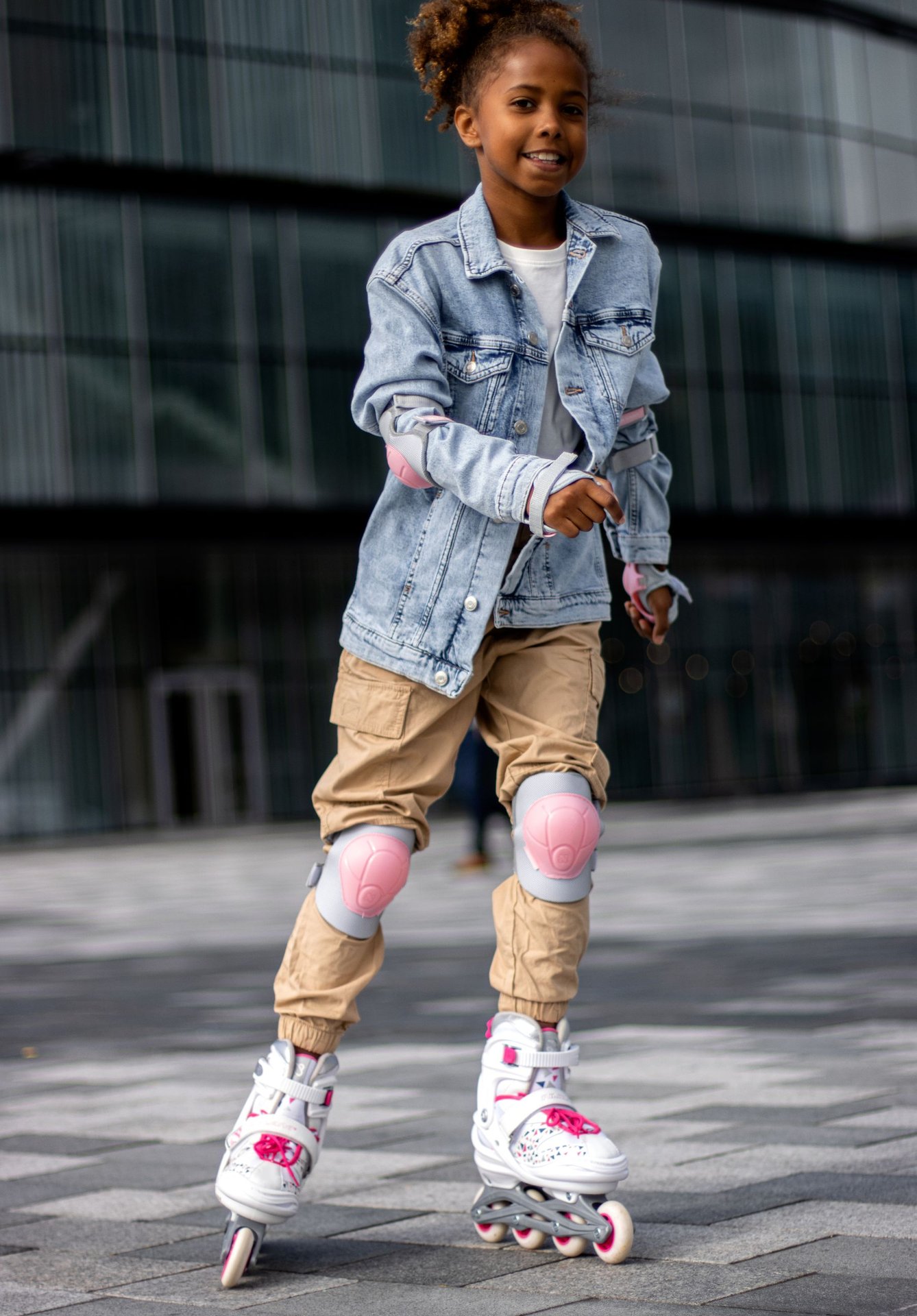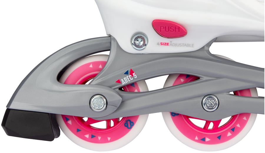 | Produktinformationen | • Verstellbar in 4 Größen mittels Druckknopf Mechanismus • Quick-lock Schnellverschluss mit PU Lederner Powerstrap und Schnürverschluss • Hartschale: stoßdämpendes PE • Innenschuh: komfortables Polyester, EVA und Perlenschaum • Schiene: high-impact PP • Rollen: PU gegossen 82A, Größe 25-28: 64 x 24 mm, Größen 29-32, 33-36 und 37-40: 70 x 24 mm • Kugellager: geschlossen ABEC 5 half-chrome • Bremsstopper: TPR 85A • 2 Inbusschlüssel werden mitgeliefert |