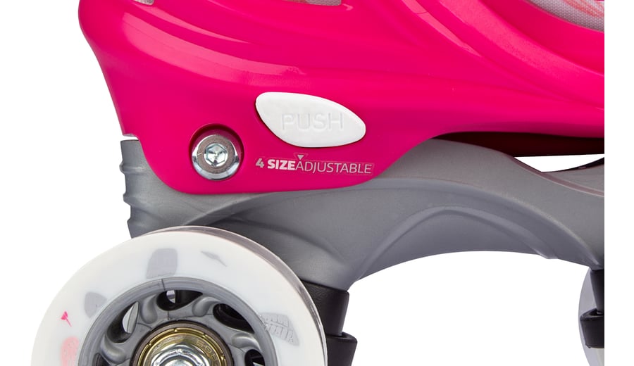 | Produktinformationen | • Verstellbar in 4 Größen mittels Druckknopf Mechanismus • Quick-lock Schnellverschluss • Höchstgewicht: 60 kg • Hartschale: stoßdämpendes PE • Innenschuh: komfortables Polyester, EVA und Perlenschaum • Schiene: high-impact PP • Rollen: PU gespritzt 82A, Größe 25-28: 54 x 32 mm, Größen 29-32 und 33-36: 60 x 32 mm • Kugellager: geschlossen ABEC 5 carbon • Bremsstopper: TPR 85A • Schlüssel zum Rollenwechsel wird mitgeliefert |
