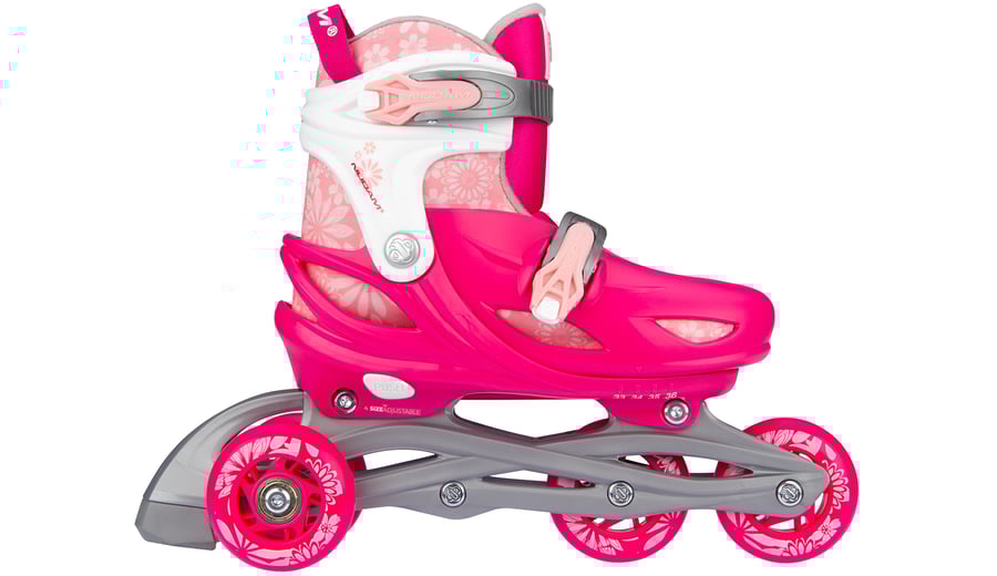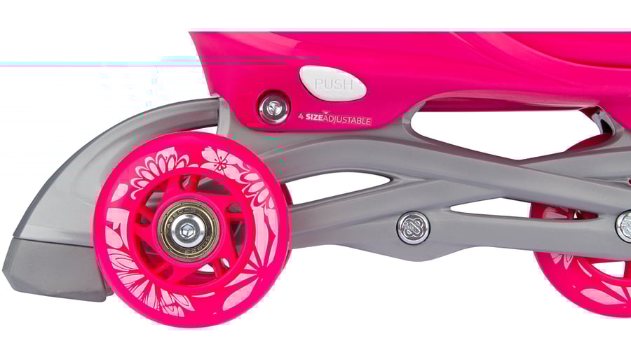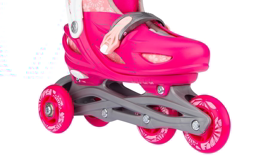 | Produktinformationen | • Vielfältige Einsatzmöglichkeiten: Inlines, Quads oder Trikes • Verstellbar in 4 Größen mittels Druckknopf Mechanismus • Quick-lock Schnellverschluss • Hartschale: stoßdämpendes PE • Innenschuh: komfortables Polyester, EVA und Perlenschaum • Schiene: high-impact PP • Rollen: PU gegossen 82A, Größe 25-28: 64 x 24 mm, Größen 29-32 und 33-36: 70 x 24 mm • Kugellager: geschlossen ABEC 5 carbon • Bremsstopper: TPR 85A 2 Inbusschlüssel werden mitgeliefert |