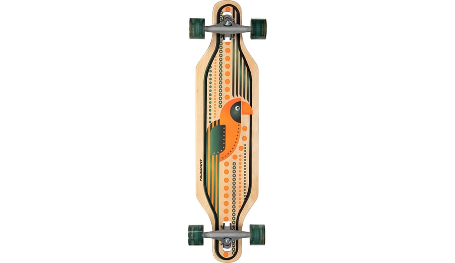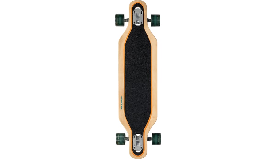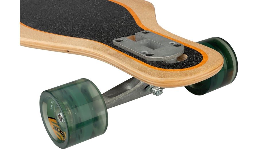 | Produktinformationen | • Brett: Flat Concave, Symmetrical Cut-away Drop-through, 9 Schichten Ahornholz • Deck: aufgesprühter Griffschicht mit Aufdruck und Aufdruck auf der Unterseite, ca. 91 x 22 cm / 36 x 8.75 Inch • Drehgelenk: 7 Inch heavy-duty Aluminium, Drop-through Montage, Sandstrahlappretur, 78A PU gegossen high rebound Dämpfung • Rollen: high rebound PU gegossen 78A, 70 x 51 mm • Kugellager: geschlossen ABEC 7 carbon • Maximalbelastung bis 100 Kg |