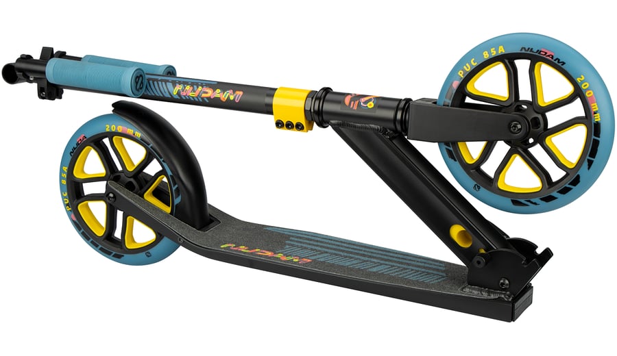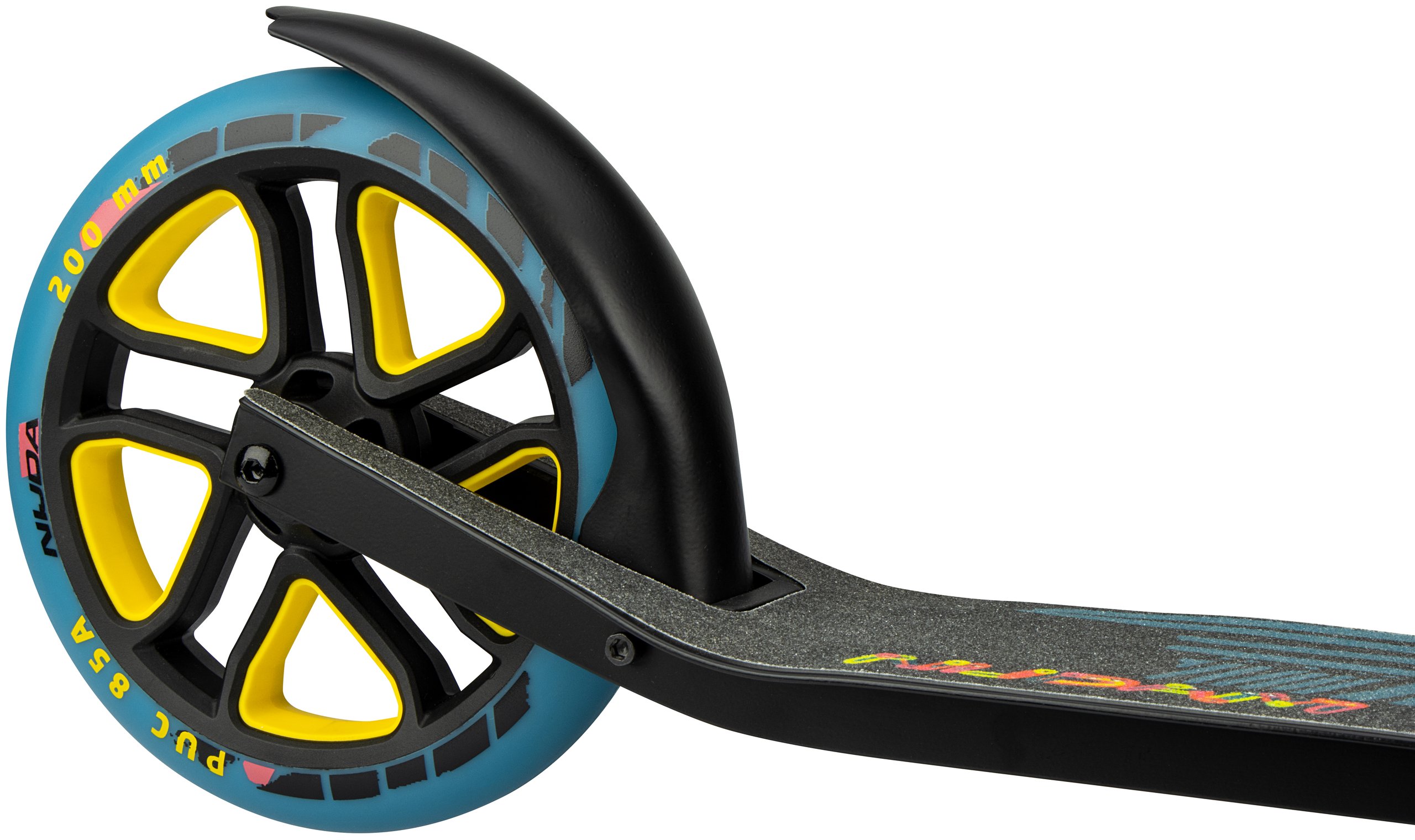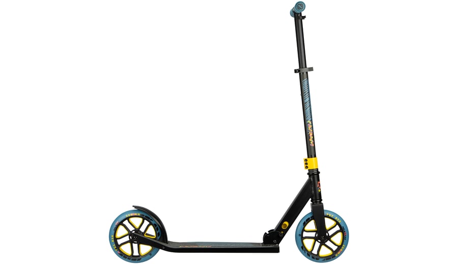| Produktinformationen | • Faltbar mittels 'fingertip-fold-up' Mechanismus • Lenker/Gestell: Stahl und leichtes Aluminium, höhenverstellbare T-Bar mit Gummigriffen, 58 x 11 x 77-100 cm • Deck: Aluminium, Breite 11 cm • Rollen: PU gegossen, 205 x 24 mm • Kugellager: geschlossen ABEC 7 chrome • Bremse: gefederte Paddelbremse am Hinterrad • 2 Inbusschlüssel werden mitgeliefert • Maximalbelastung: 50kg |