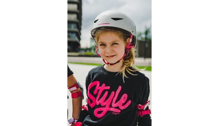 | Produktinformationen | • Helmet meets current safety standards • Adjustable by means of a built-in head ring with an adjustment dial • Multi-purpose - can be used for various sports such as skating, skateboarding or cycling • Available sizes (head circumference): S - approx. 50 - 54 cm, M - approx. 54 - 58 cm, L - approx. 58 - 62 cm • Outer shell: high-impact ABS, dull finish • Inner body: lightweight shock-absorbing EPS • Lining: breatheable polyester • Chin strap: nylon with quick-lock buckle |