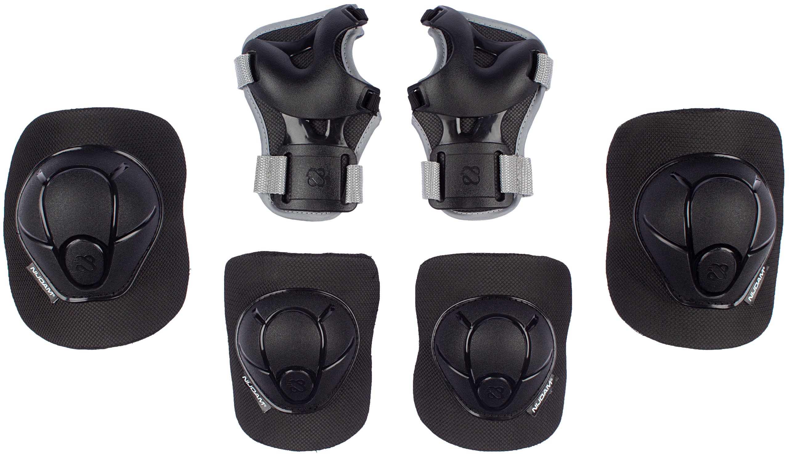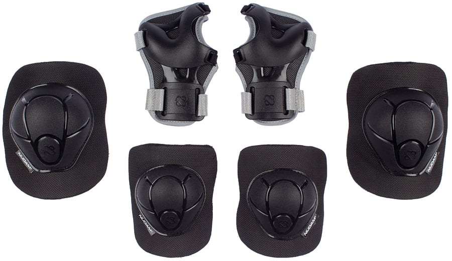 | Produktinformationen | • For children • Set meets current safety standards • Main pads: comfortable, sturdy EVA foam with mesh cover • Protective caps: high-impact shock-absorbing PE • Each element is adjustable thanks to the elastic straps, PP webbing and Velcro closures • Set includes 1 pair of elbow-, wrist- and knee protectors |