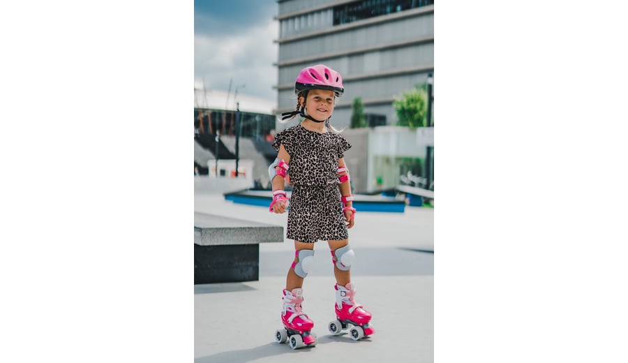 | Produktinformationen | • For children • Set meets current safety standards • Main pads: comfortable, sturdy EVA foam with mesh cover • Protective caps: high-impact shock-absorbing PE • Each element is adjustable thanks to the elastic straps, PP webbing and Velcro closures • Set includes 1 pair of elbow-, wrist- and knee protectors |
