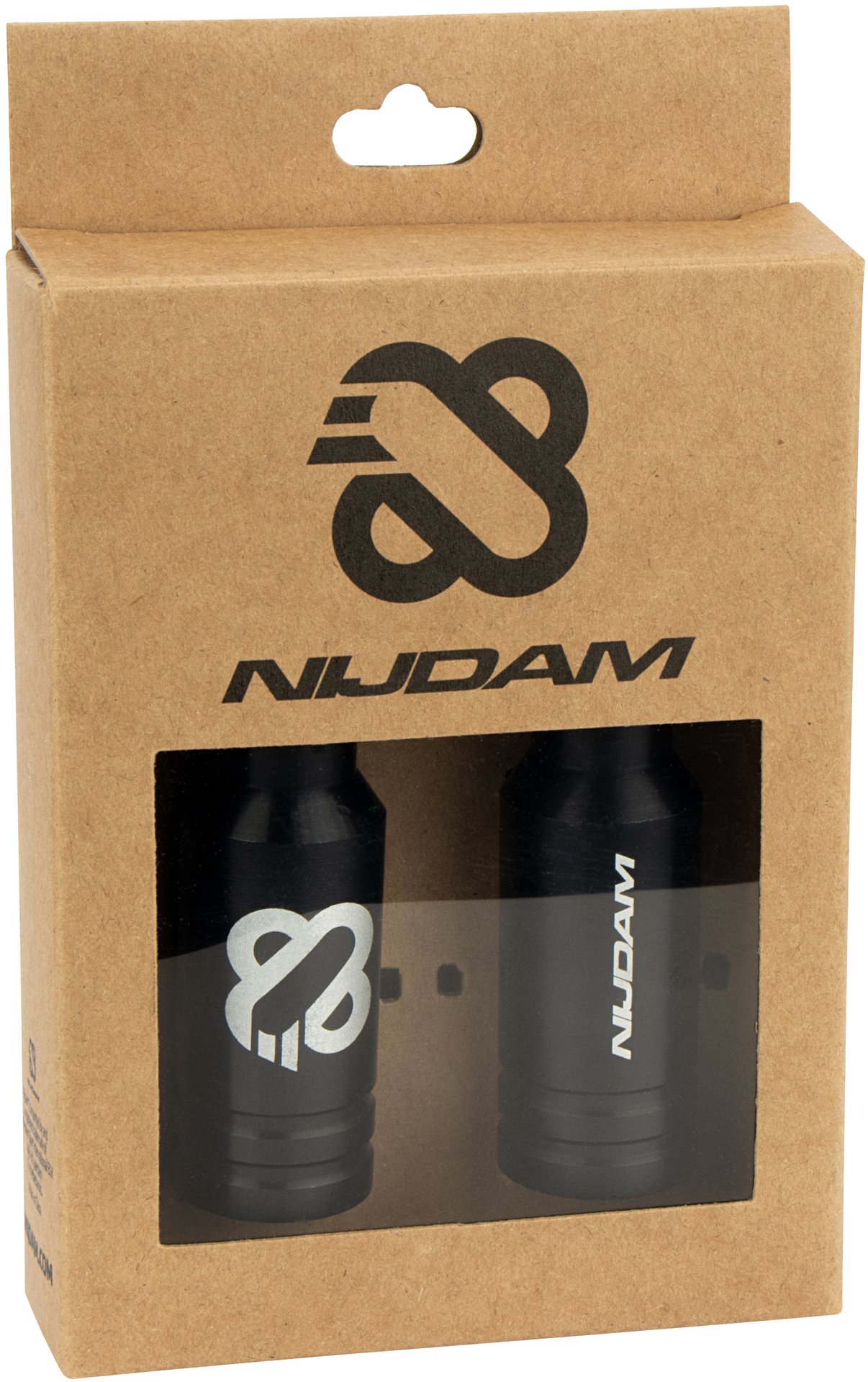 | Produktinformationen | • Aluminum pegs for stunt scooters, CNC finish • Hardened steel axle bolt, nickle finish • Suitable for Nijdam stunt scooters • Set of 2 pegs with bolts (front wheel bolt: 48mm x M8, rear wheel bolt 79mm x M8) and Allen key |