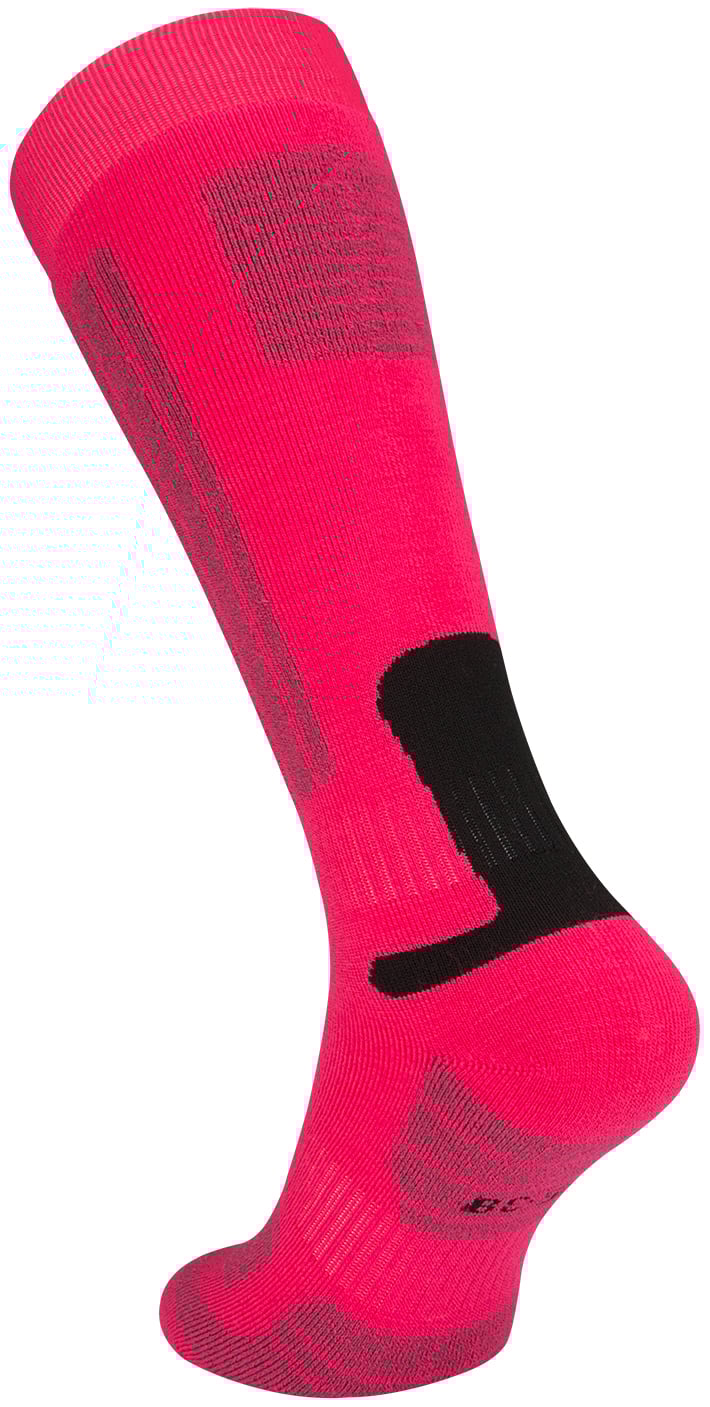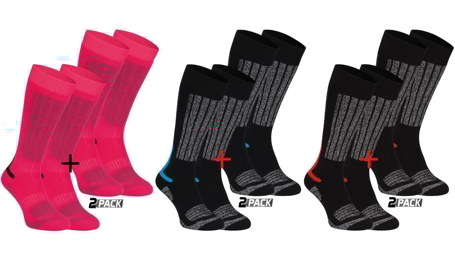| Characteristics | • comfortable, anatomically shaped, long model ski sock • moisture-regulating materials to keep your feet warm and dry during skiing or snowboarding • elastic, vertically knitted instep band to snugly fit the sock around your foot • thickening on the shin to prevent irritation with your ski or snowboard boot • reinforced, shock-absorbing padded heel and toe to absorb the initial shocks of skiing • ankle and midfoot support for optimal support and to prevent foot fatigue • flat knitted toe seam that you won’t feel • partial terry cloth interior for extra softness |