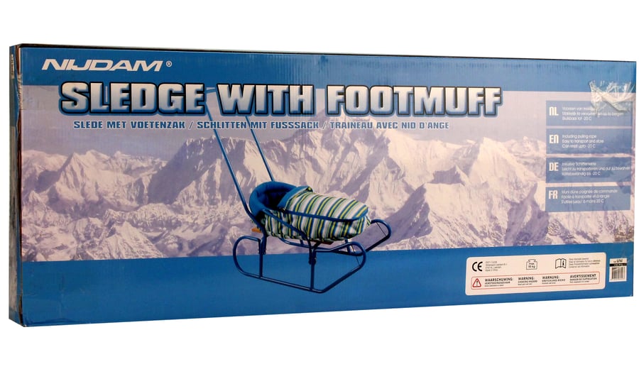 | Characteristics | • steel frame • lacquered beechwood slatted deck • 600D polyester Oxford zippered foot muff • foot muff suitable for children up to approx. 3 years • height push bar approx. 90 cm • pulling strap • with backrest • seat height approx. 20 cm • dimension approx. 84 x 51 cm • maximum load 50 kg |