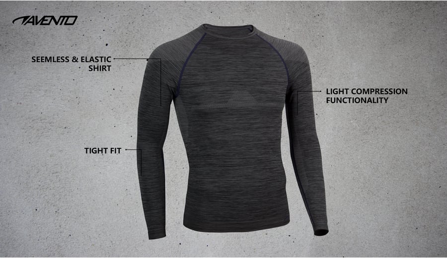 | Characteristics | • tight thermal underwear without side seams • light compression functionality • support on various parts of the body • long raglan sleeve • round neckline • elasticated cuffs • fabric weight approx. 220 gr/m² |