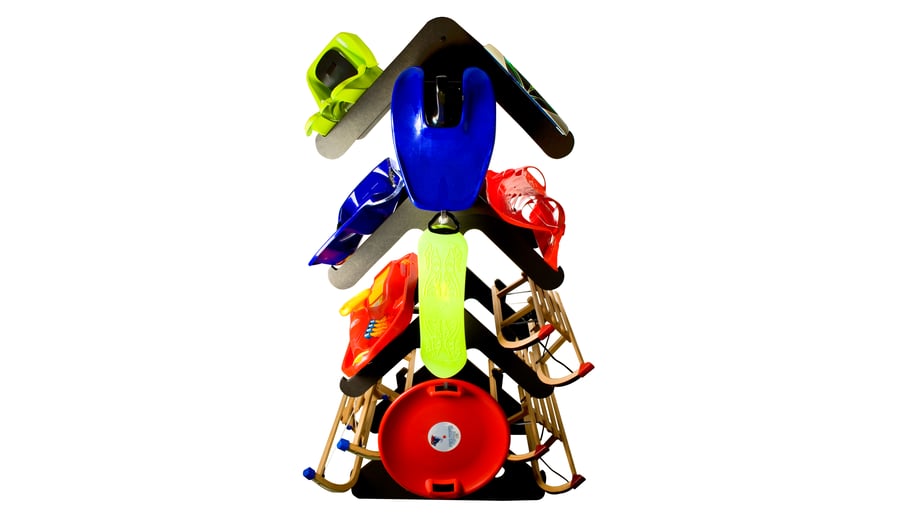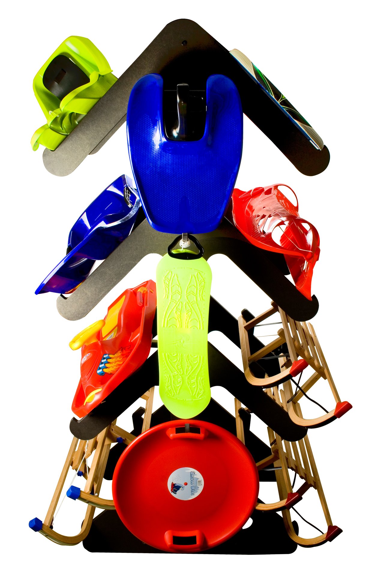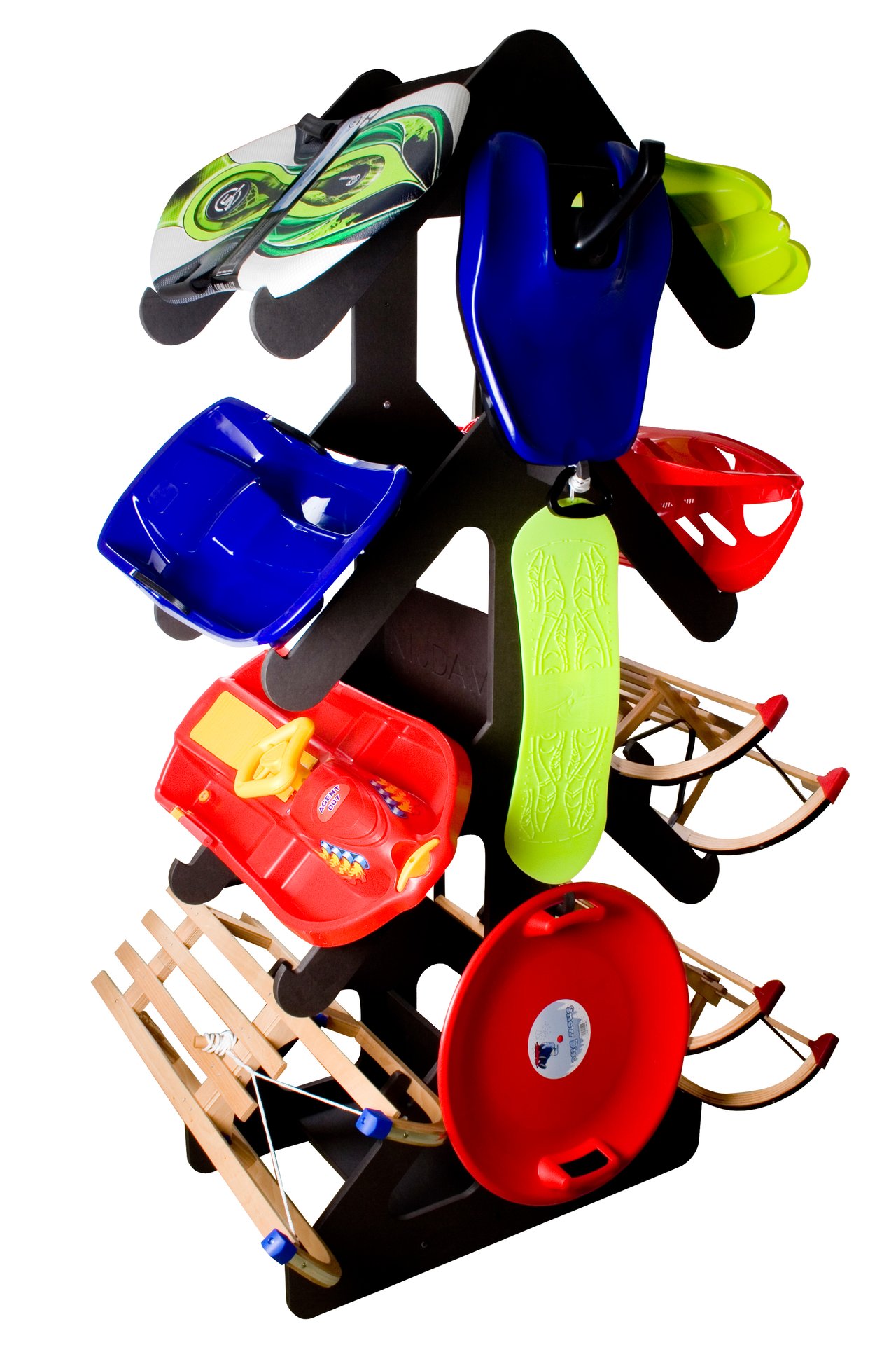 | Characteristics | • suitable for 8 sledges or 16 longboards • longboards held in place with fixing studs • four hooks which can be attached to both sides of the stand • both sides display milled logo Nijdam® • weight approx. 23 kg • dimension approx. 101 x 54 x 230 cm |