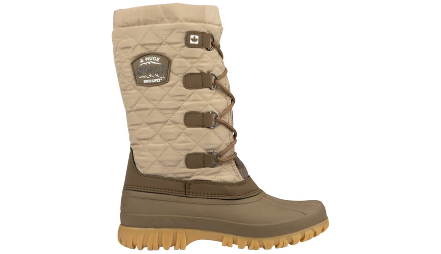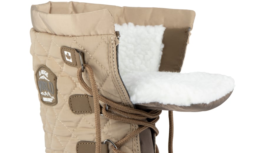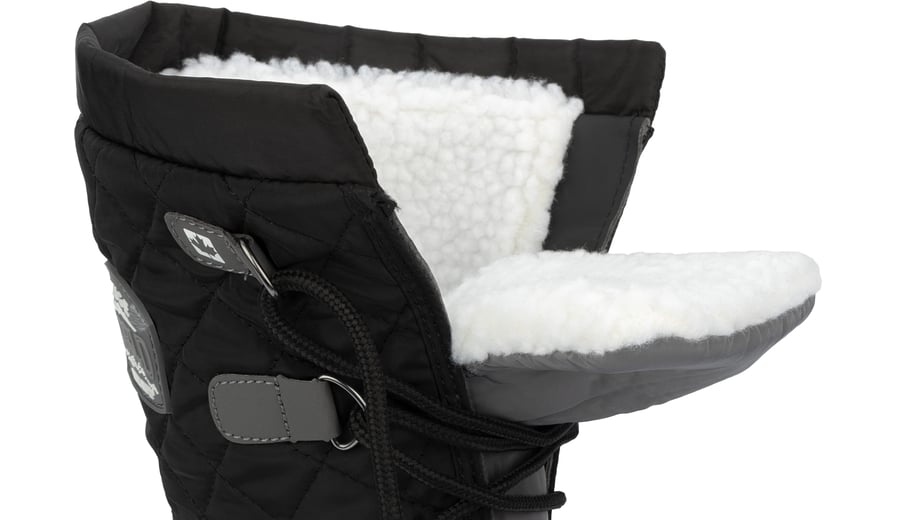 | Characteristics | • PU nubuck leather and quilted polyester • high model • imitation teddy fur lining • TPR rubber rugged sole • TPR rubber foot • laces with hooks • imitation teddy fur trim at the top |