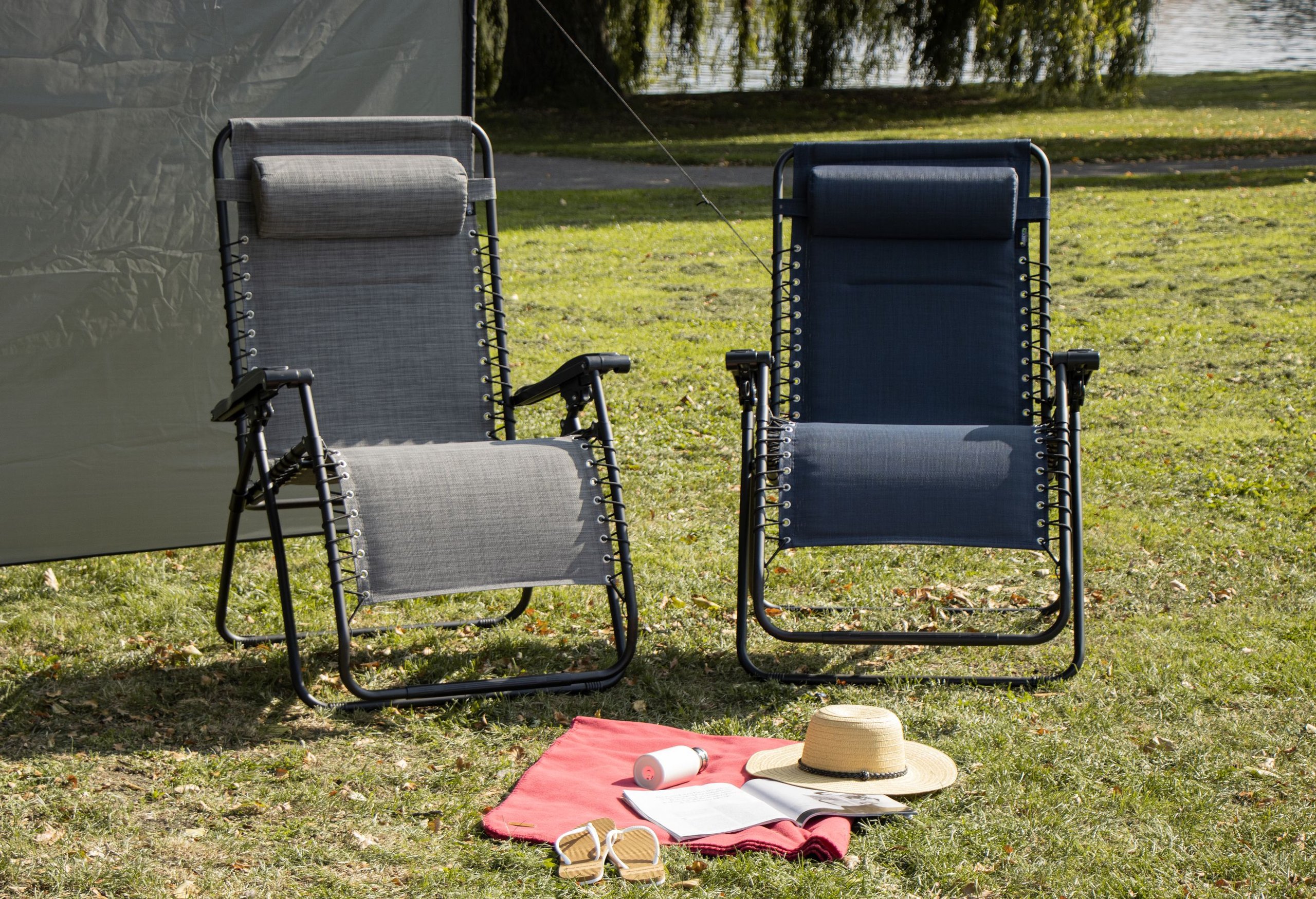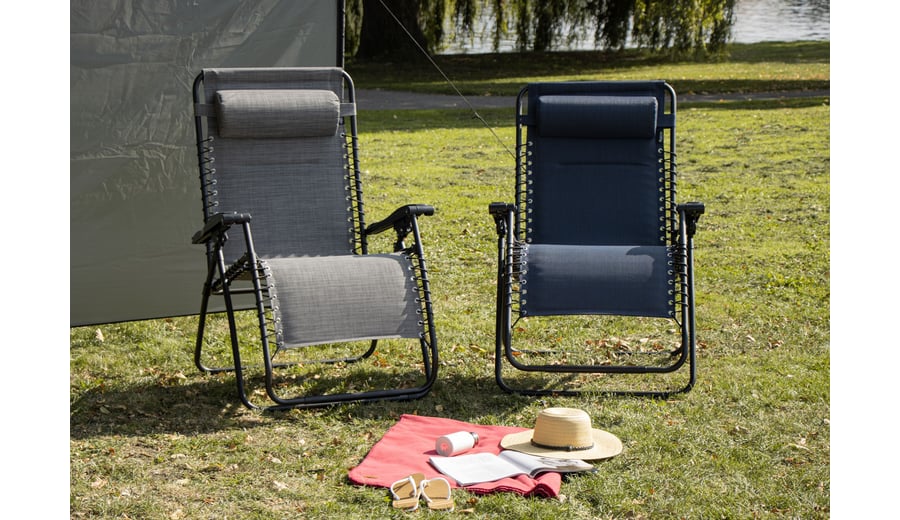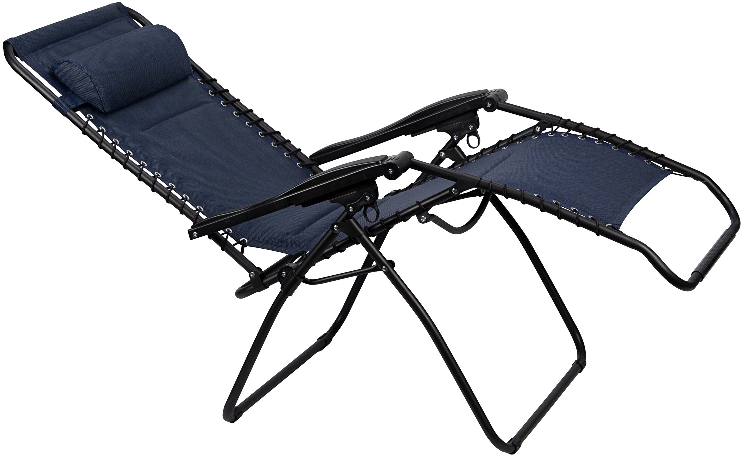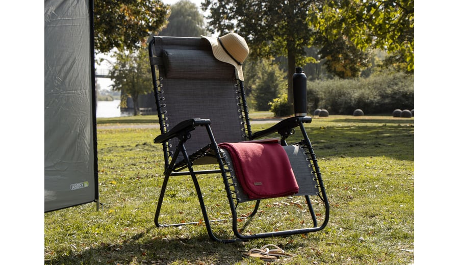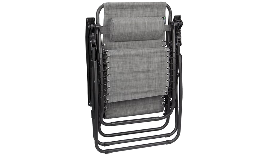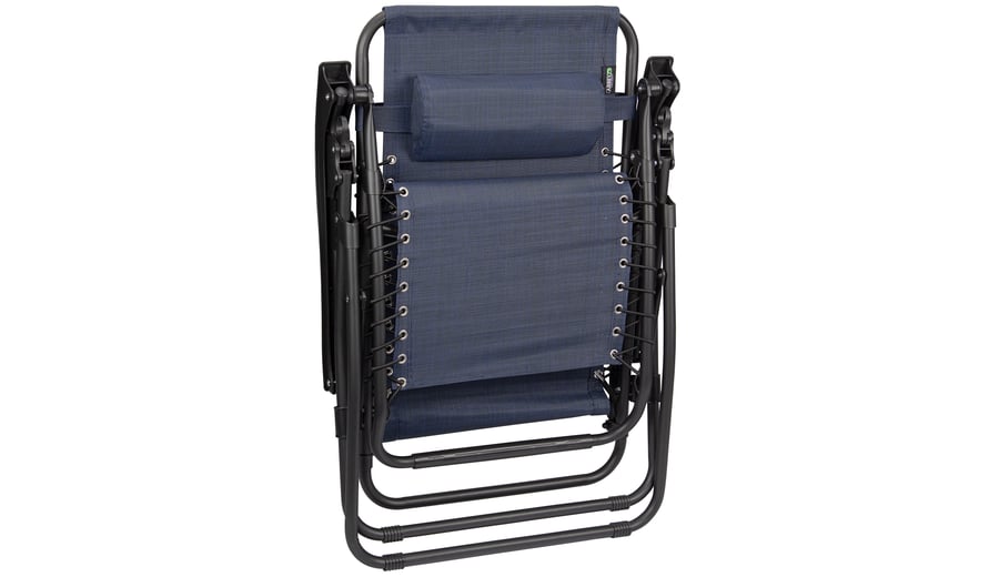 | Characteristics | • luxury textilene fabric • steel frame with matt finish powder coating • polyamide connection parts • diameter tube 2.2 cm • high backrest and foot support reclinable to a wide angle • removable cushioned headrest • padded back and seat sections • fabric attached to frame with elastic cords • 2 U-shaped legs are equipped with tube protectors at the corners • additional tube underneath the seat • dimensions approx. 90 x 75 x 112 cm • maximum load 165 kg |