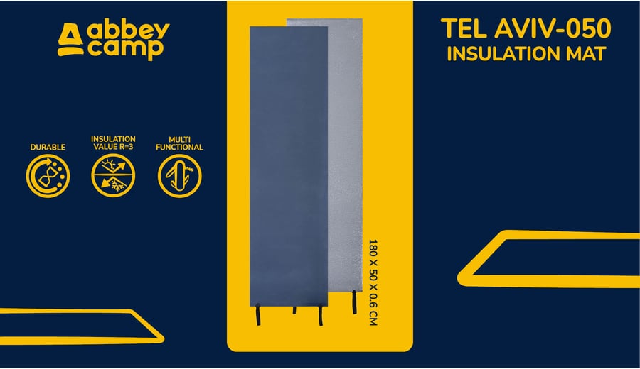 | Characteristics | • roll-up foam mat for 1 person • dimensions 180 x 50 x 0.6 cm • top: comfortable EVA • bottom: aluminium coating for optimal insulation • insulating capacity expressed in R-value: 3.0 • including elastic bands |