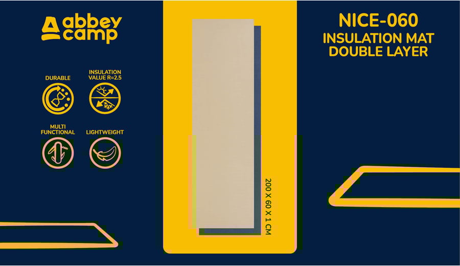 | Characteristics | • duallayer campingmat • compact and lightweight • easy to clean • thickness approx. 1.0 cm • dimensions approx. 200 x 60 cm • insulating capacity expressed in R-value: 2.5 • incl. 2 elastic straps for transport/storage |