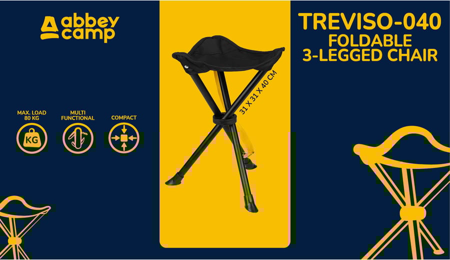 | Characteristics | • 3 steel legs with a diamter of 19 mm • polyester Oxford seating • dimensions approx. 31 x 31 x 40 cm • foldable • closed with a velcro • including carrying bag • maximum load 80 kg |